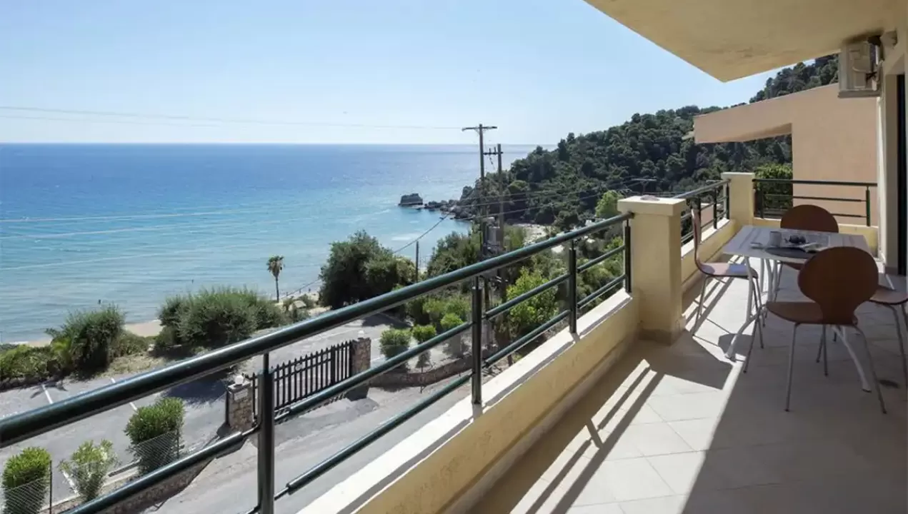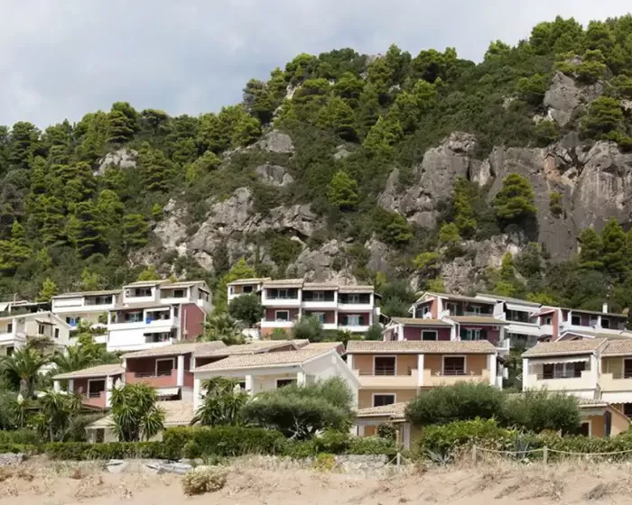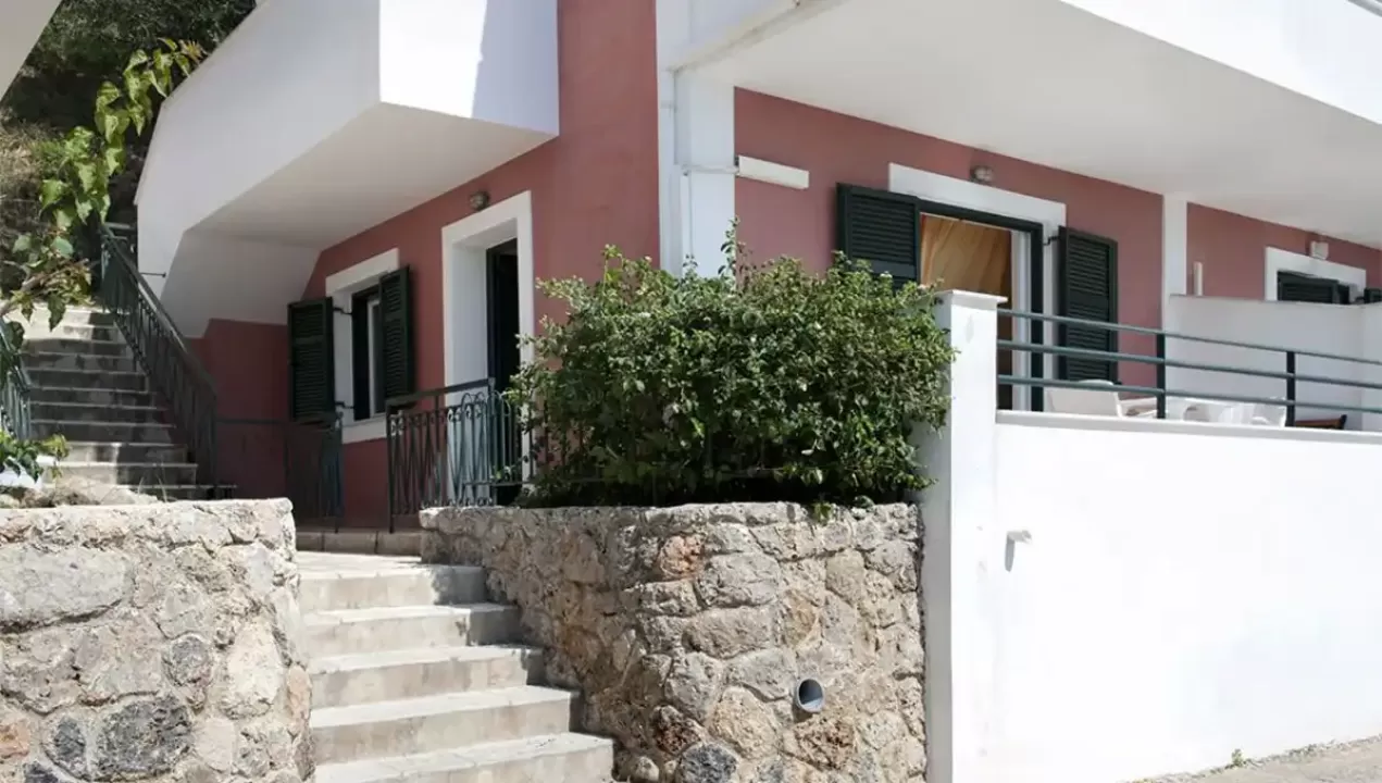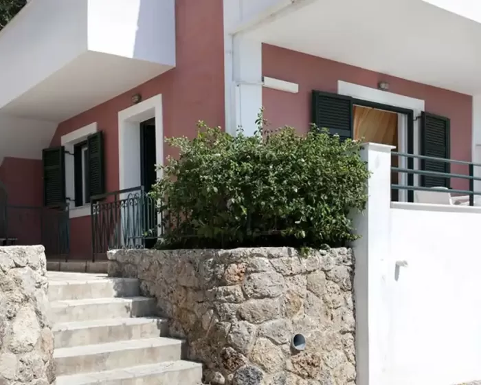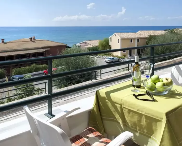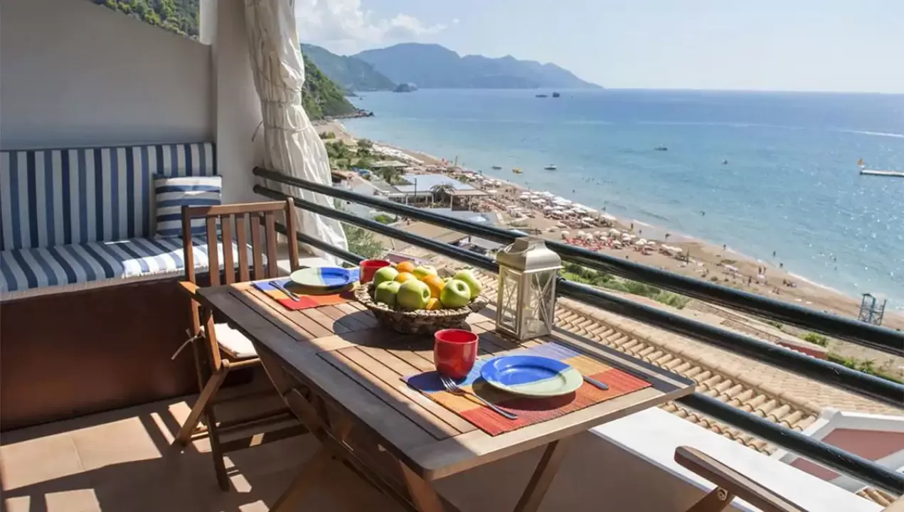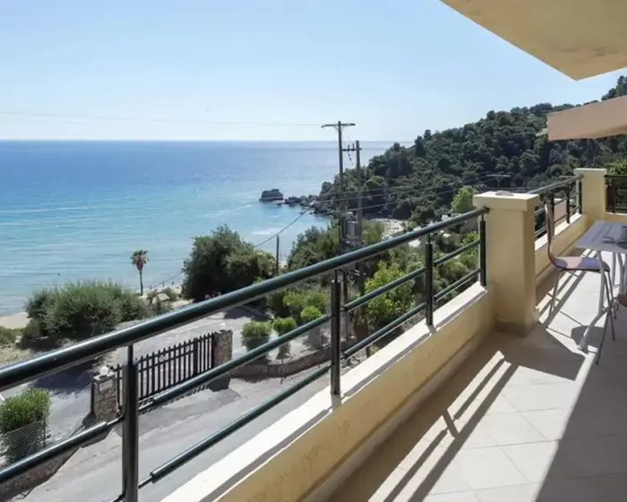 Vila Glyfada Beachfront Deluxe Glyfada Krf se nalazi na oko 200 metara udaljenosti od peščane plaže Glyfada, na oko 3 kilometra od mesta Pelekas i na oko 12 kilometara udaljenosti od grada Krfa i aerodroma. Apartmanski kompleks je smešten na uzvišenju, sve sobe su sa pogledom na more. U neposrednoj blizini smeštaja nalazi se prodavnica, restorani i barovi. Autobusko stajalište gradskog prevoza udaljeno je oko 300 metara od vile. Ceo kompleks ima ukupno 200 soba, usluga je najam bez ishrane ili noćenje sa doručkom.