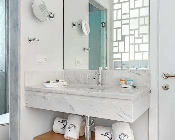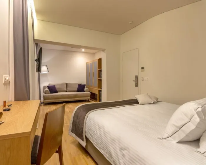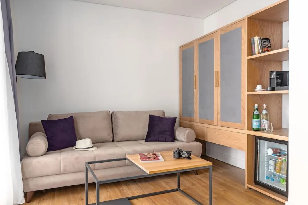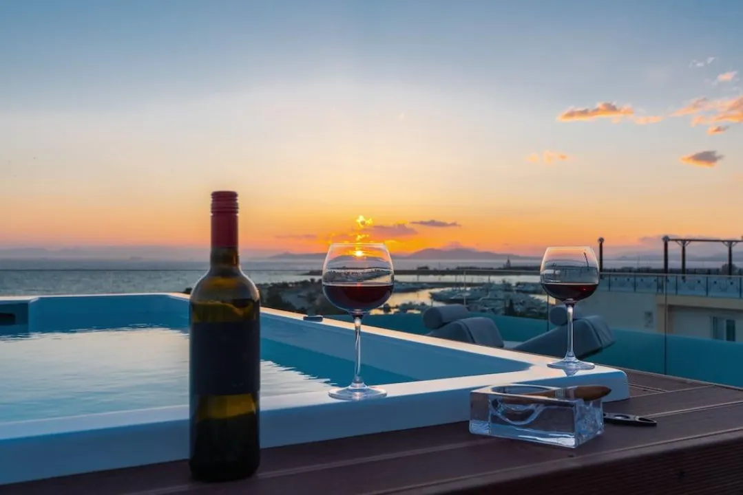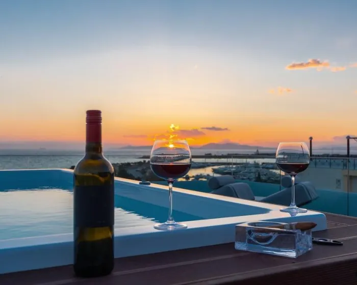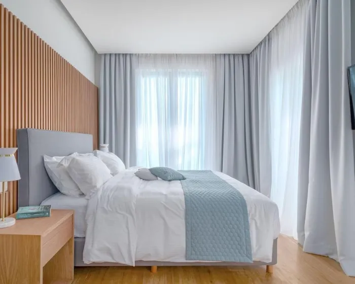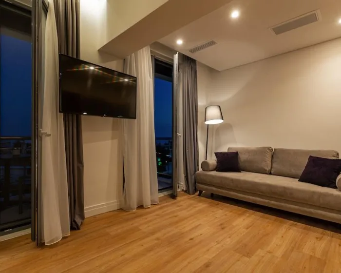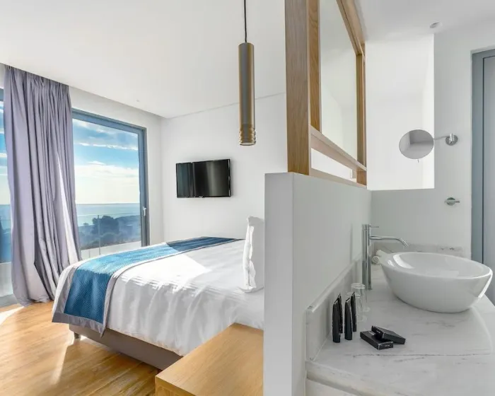 Sobe imaju dnevnu sobu, kuhinju i kupatilo. Klima uređaj obezbeđuje udobnu temperaturu. Gosti mogu opuštati i uživati u pogledu na more sa balkona ili privatne terase nekih soba. Sobe imaju bračni krevet i sofu na razvlačenje. Mogu se zatražiti odvojene spavaće sobe. Gosti mlađi od 18 godina mogu zatražiti dečiji krevetac i dodatne krevete. U sobi su takođe dostupni sef i mini bar. Gosti će takođe pronaći čajnu/kafenu stanicu među standardnim sadržajima. Usluga peglanja je obezbeđena radi udobnosti gostiju. Telefon, TV i WiFi (bez dodatne naplate) su takođe obezbeđeni. Papuče su uključene. Fen za kosu i bade mantili su dostupni u kupatilima, koja su opremljena tuš kabinom i hidromasažnom kadom. U hotelu su dostupne porodične sobe, sobe za nepušače i sobe za pušače.
