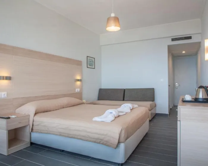 Klima uređaj obezbeđuje prijatnu temperaturu u sobama. Neke sobe imaju balkon. Sobe su opremljene bračnim krevetom, a moguće je rezervisati i sobe sa odvojenim spavaćim sobama. Dečji kreveti i dodatni ležajevi mogu se zatražiti za mlađe goste. Na raspolaganju je sef za čuvanje ličnih stvari. Frižider i mini frižider dostupni su radi dodatne praktičnosti. Direktna telefonska linija, televizor sa satelitskim i kablovskim kanalima, radio i WiFi bez doplate omogućavaju udoban boravak. Kupatila su opremljena tušem i kadom, kao i fenom za kosu. Porodične sobe su dostupne za goste sa decom.