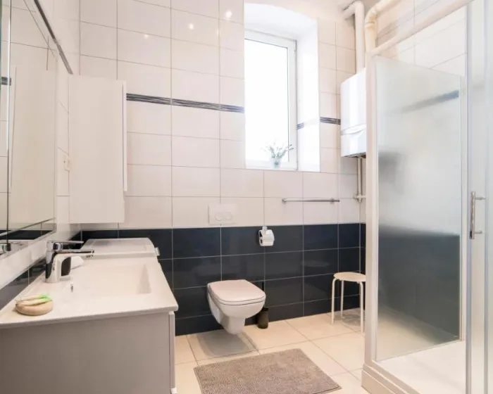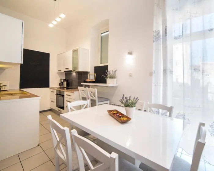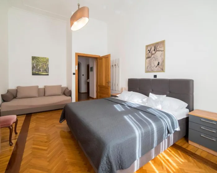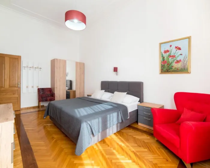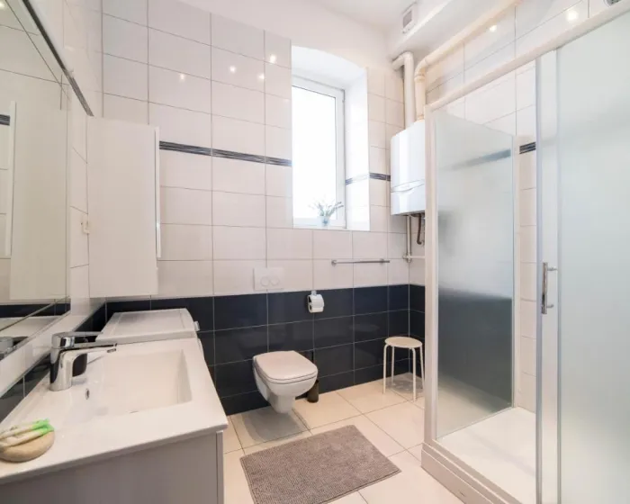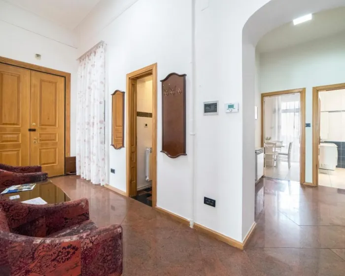 Prostrani apartman ima 3 spavaće sobe, 2 kupatila, posteljinu, peškire, flat-screen TV sa satelitskim kanalima, trpezariju, potpuno opremljenu kuhinju i terasu sa pogledom na grad. Ovaj apartman je pogodan za osobe koje boluju od alergija i za nepušače.