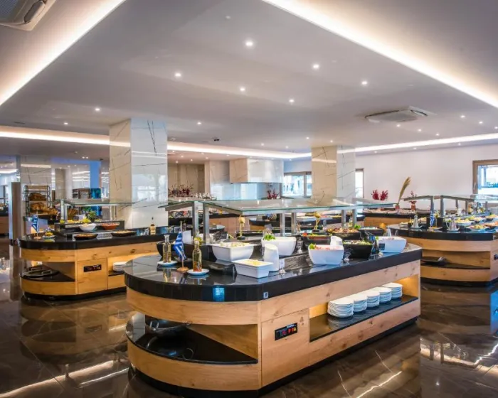 Gostima su na raspolaganju restoran sa visokim stolicama za decu, sala za doručak, kafić, bar i lobi bar. Posebne pogodnosti za goste na all inclusive odmoru uključuju, na primer, internacionalna pića, dijetalne obroke i obroke za decu. Na zahtev se mogu pripremiti obroci bez glutena, vegetarijanska jela, organska hrana, hrana bez laktoze i veganska jela. Hrana za bebe dostupna je na zahtev bez doplate. Priprema hrane pred gostima predstavlja posebnu atrakciju.