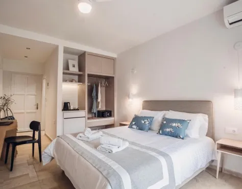 Sobe imaju dnevni boravak, kuhinju i kupatilo. Klima uređaj i centralno grejanje obezbeđuju prijatnu temperaturu. Neke sobe imaju balkon. Gostima je na raspolaganju sofa krevet, a mogu se rezervisati i odvojene spavaće sobe. Dečji kreveti i dodatni ležajevi dostupni su na zahtev. U sobama se nalazi radni sto, frižider i mini frižider. Gostima je na raspolaganju i pegla. Satelitska televizija i WiFi obezbeđuju dodatnu udobnost. Kupatila su opremljena hidromasažnom kadom i fenom za kosu. Hotel nudi porodične sobe pogodne za roditelje sa decom. kupatilo, fen, klima-uredjaj, TV, sef, telefon, balkon
