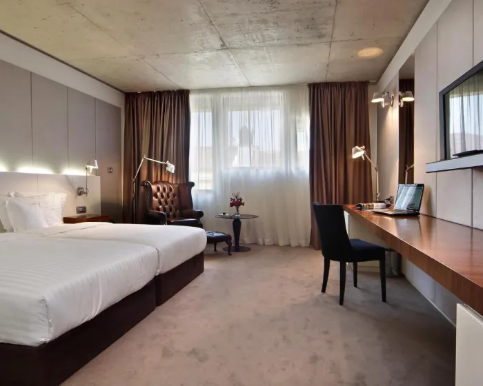 Klima uređaj i pojedinačno podesivo grejanje osiguravaju da sobe održavaju udobne temperature. Sve sobe su sa tepihom i imaju bračni krevet, krevet queen size, king size krevet ili kauč na razvlačenje. Kreveti za decu i dodatni kreveti se mogu zatražiti za mlađe goste. Sef, mini bar i radni sto su takođe dostupni. Gosti će pronaći i aparat za kafu/čaj među standardnim sadržajima. Direktni telefon, televizor sa satelitskim/ kablovskim kanalima, radio i WiFi pružaju sve što je potrebno za udoban odmor. Gosti će takođe pronaći papuče u svojim sobama. Tuš kabina i kada su uključene u kupatilima. Fen za kosu, ogledalo za šminkanje, bade mantili i telefon su dostupni za svakodnevnu upotrebu. Kao posebna karakteristika, kupatila su takođe opremljena kozmetičkim proizvodima i izborom peškira. Gosti takođe mogu rezervisati sobe prilagođene za osobe u kolicima sa pristupačnim kupatilima.