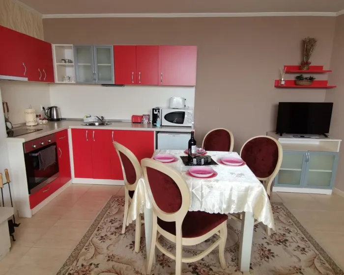 Apartman sa 1 spavaćom sobom ima dnevnu sobu sa flat-screen TV-om sa satelitskim kanalima, potpuno opremljenu kuhinju sa rernom i mikrotalasnom pećnicom, i 2 kupatila sa fenom za kosu. Jediničen je zvučno izolovan i sastoji se od pločica kao i kamina. U apartmanu postoji svlačionica za goste da se presvuku.