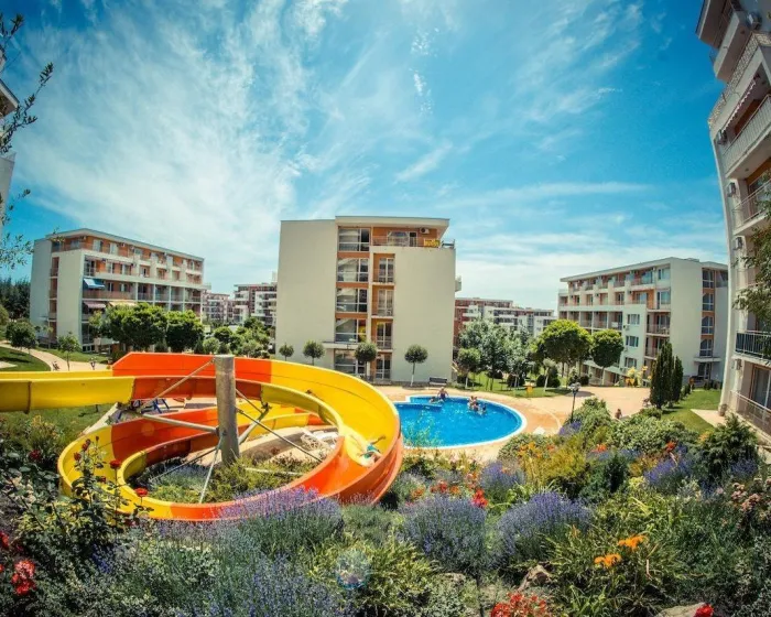 Ovaj odmaralište se nalazi u podnožju planine Stara Planina na obali Crnog mora, samo 5 minuta vožnje od Sunčane plaže (Bugarska Costa del Sol). Odmarališta su udaljena 2,5 km od S. Vals-a i oko pola sata vožnje od aerodroma.