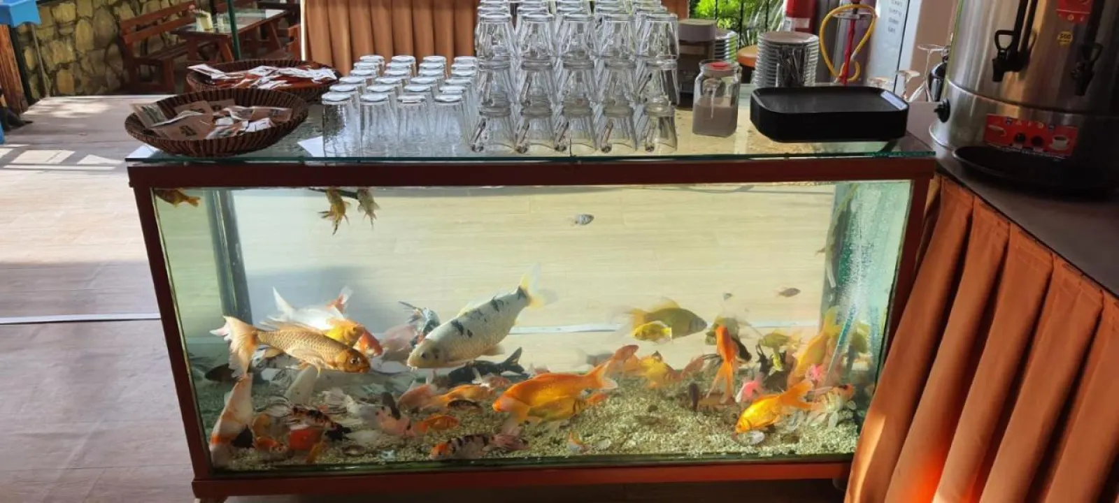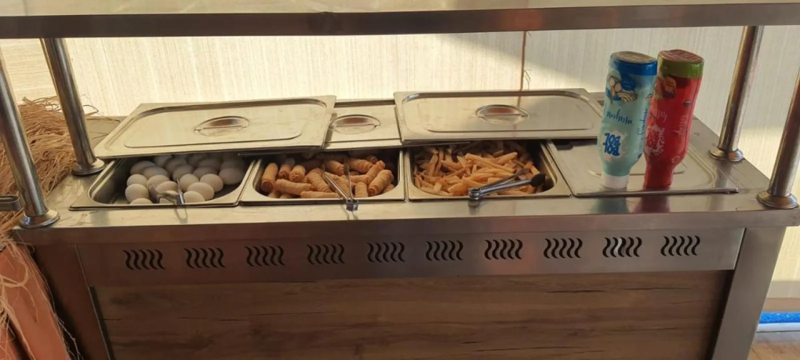 Različite opcije za obroke su dostupne, uključujući restoran, kafeteriju i bar. Doručak i ručak se služe svakog dana. Osoblje takođe s radošću pruža dečije obroke.