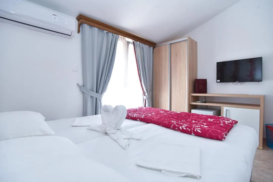 Sobe hotela uključuju klima uređaj, centralno grejanje i ventilator. Sve sobe imaju bračni krevet ili krevet queen size. Sadržaji uključuju frižider, aparat za kafu/čaj, televizor sa satelitskim/kablovskim kanalima i WiFi (bez dodatne naplate). Kupatila su opremljena tušem i uključuju fen za kosu. Kozmetički proizvodi i izbor peškira pružaju dodatnu udobnost u kupatilima. Hotel ima porodične sobe i sobe za nepušače.