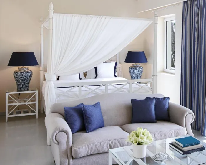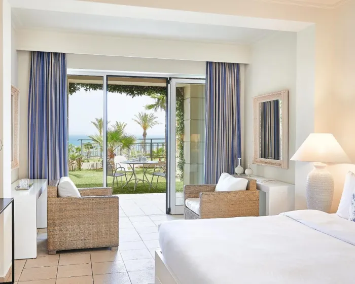 Klima uređaj osigurava da sobe održavaju udobne temperature. Gosti mogu uživati u pogledu na more sa balkona ili terase. Sobe imaju bračni krevet. Dostupne su odvojene spavaće sobe. Dodatni kreveti ili dečiji kreveti mogu biti obezbeđeni na zahtev. Takođe postoji i sef i radni sto ili, uz dodatnu naknadu, minibar. Gosti će takođe pronaći aparat za čaj/kafu uključen među standardnim funkcijama. Telefon, TV i WiFi (bez dodatne naknade) pružaju sve neophodno za udoban odmor. Gosti mogu iskoristiti uslugu večernje usluge spremanja sobe. Papuče su uključene. Kupatila su opremljena tušem i kadom. Fen za kosu, šminkersko ogledalo, bade mantili i telefon su dostupni za svakodnevnu upotrebu. Za dodatnu udobnost u kupatilima, gostima se nude kozmetički proizvodi. Resort ima porodične sobe i sobe za nepušače.