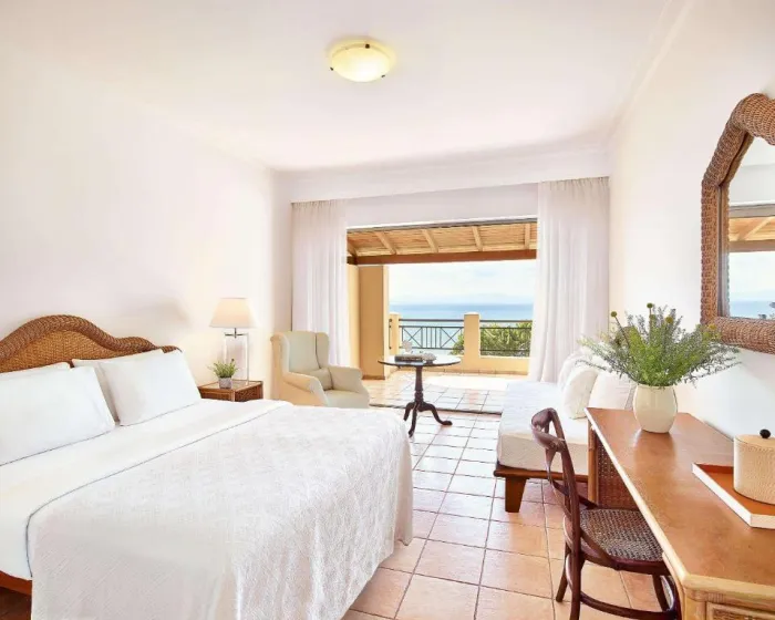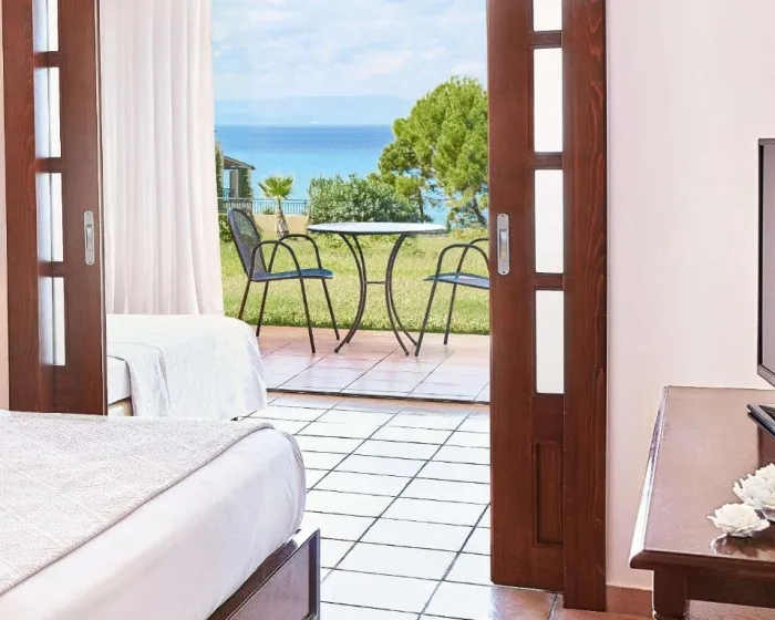Standard soba (30 m²), bočni pogled na more. Smeštene su u glavnoj zgradi. Smeštaj za do 3 osobe.