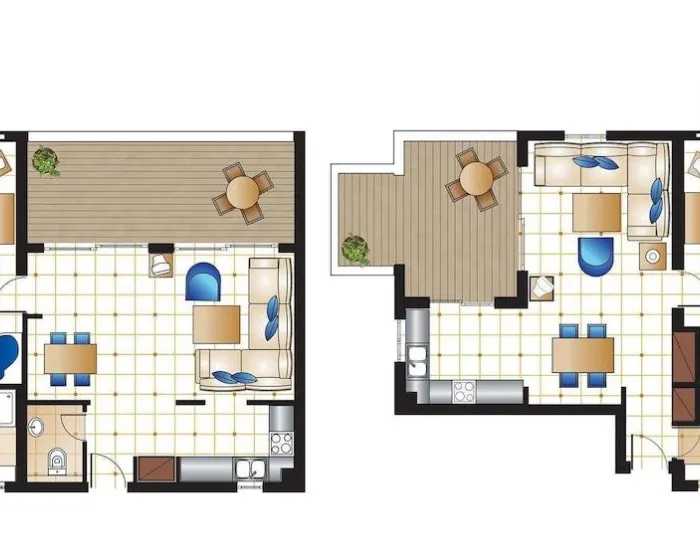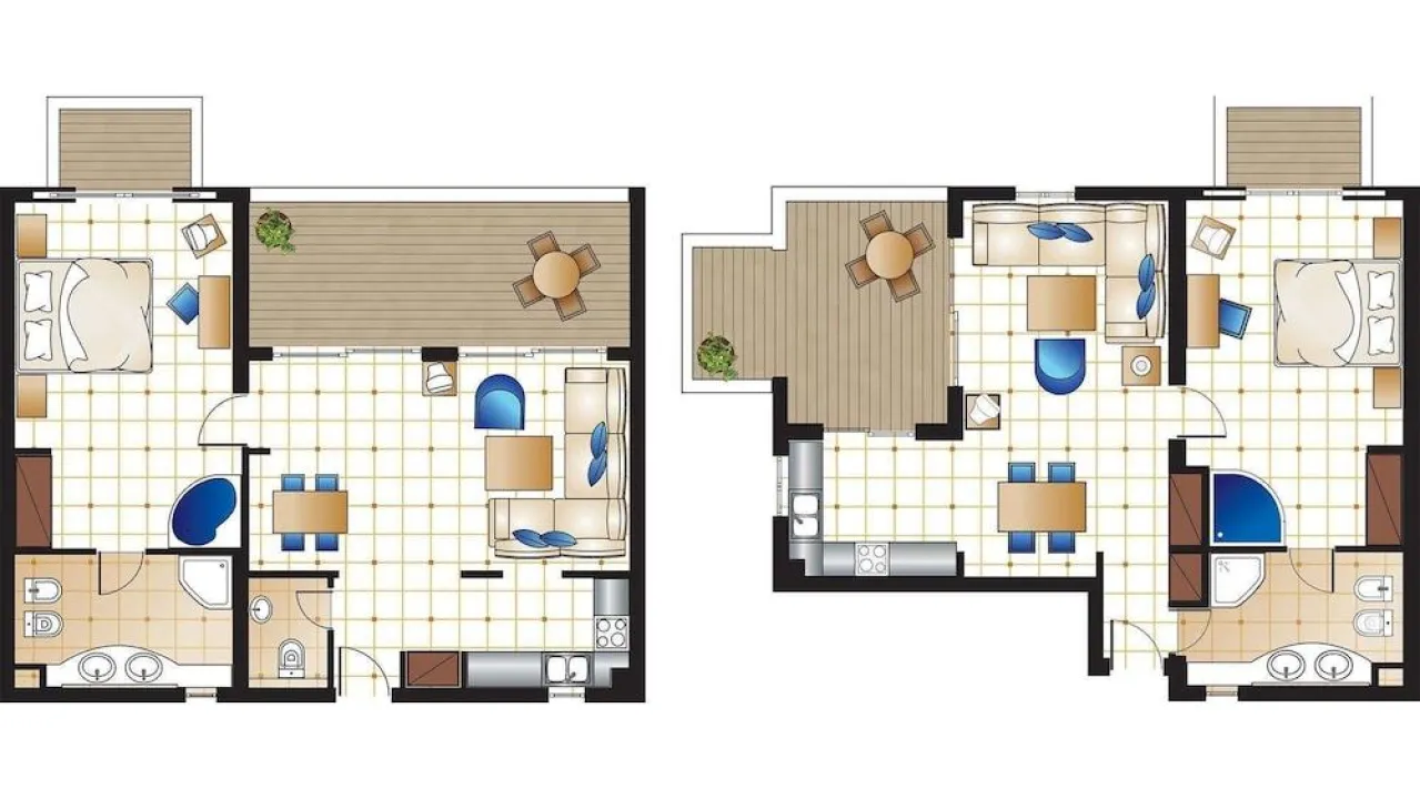 Sobe imaju dnevni boravak, kuhinju i kupatilo. Klima uređaj (bez dodatne naplate), individualno podesivo grejanje i grejna peć osigurava udobne temperature. Gosti mogu opuštajući se i uživajući u delimičnom pogledu na more s balkona ili privatne terase nekih soba. Sobe imaju krevet veličine queen i kauč na razvlačenje. Dostupne su posebne spavaće sobe. Dodatni kreveti ili dečiji kreveti mogu se obezbediti na zahtev. Takođe su dostupni sef, minibar i radni sto. Za goste koji se sami hrane, postoji dobro opremljena kuhinja s frižiderom, mini frižiderom, mikrotalasnom pećnicom, čajnom/kafanskom stanicom, mašinom za pranje sudja i rernom. Mašina za pranje je obezbeđena za udobnost gostiju. Takođe su obezbeđeni telefon, flat-screen televizor s satelitskim kanalima, radio, CD player, adapter za utičnicu i WiFi (bez dodatne naplate). Prijateljske papuče su uključene. Kupatila su opremljena tušem, kadom, hidromasažnom kadom i dečijom kadom. Fen za kosu, ogledalo za šminkanje i bade mantil dostupni su za svakodnevnu upotrebu. Za dodatnu udobnost u kupatilima, gostima su ponuđeni kozmetički proizvodi. Gosti takođe mogu rezervisati sobe prilagođene za osobe u invalidskim kolicima s kupatilima prilagođenim za osobe u invalidskim kolicima. Klub ima 230 porodičnih soba i soba za nepušače.