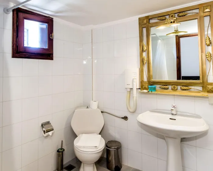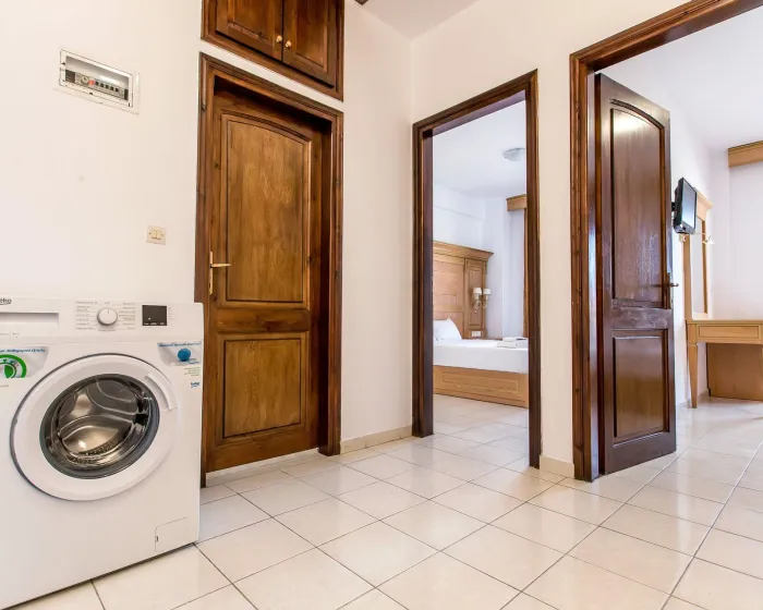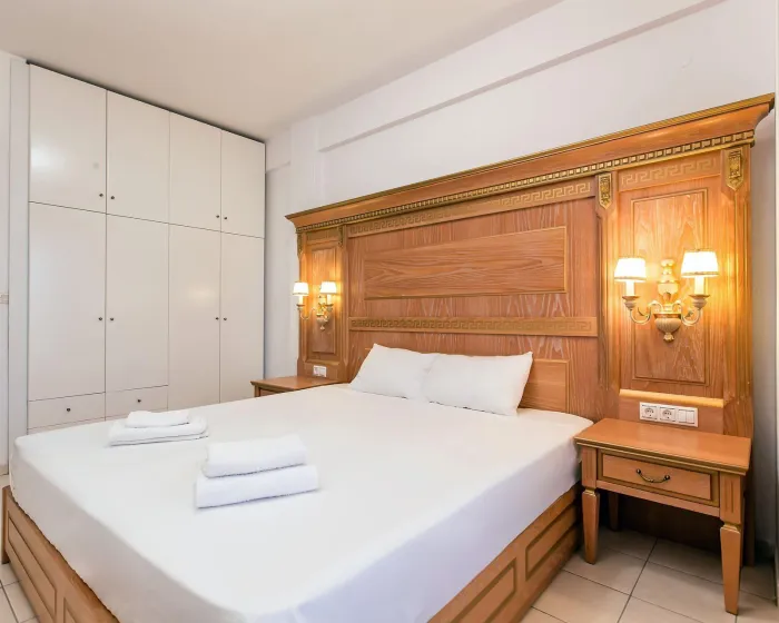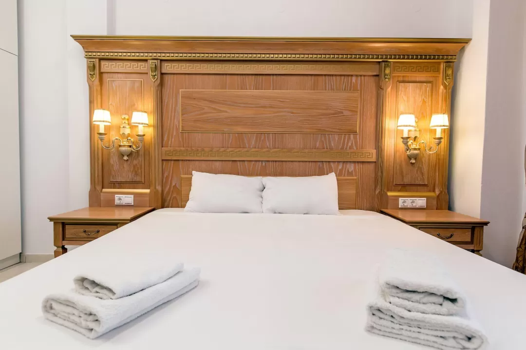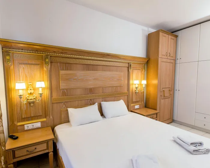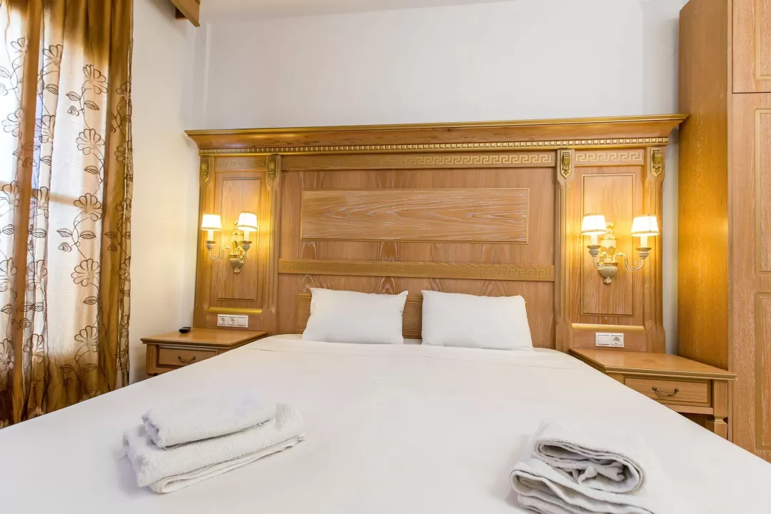 Ova rustična vila od 110 m² u stilu kuće na dva sprata, građena u tradicionalnoj arhitekturi, sa drvenim elementima. Na donjem spratu se nalazi dnevna soba sa potpuno opremljenom kuhinjom i pristupom verandi, kao i WC. Na drugom spratu se nalaze dve spavaće sobe, svaka sa svojim balkonom i kupatilom sa tuš kabinom. Vila je opremljena klima uređajem, TV-om, wi-fi. Maksimalni smeštaj je do 8 osoba. Grčka vila na plaži je savršen izbor za velike porodice sa decom ili grupe prijatelja. Gosti mogu koristiti sve sadržaje hotela i apartmana Greek Pride smeštenih na 300 m udaljenosti.