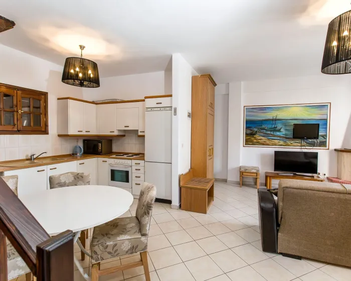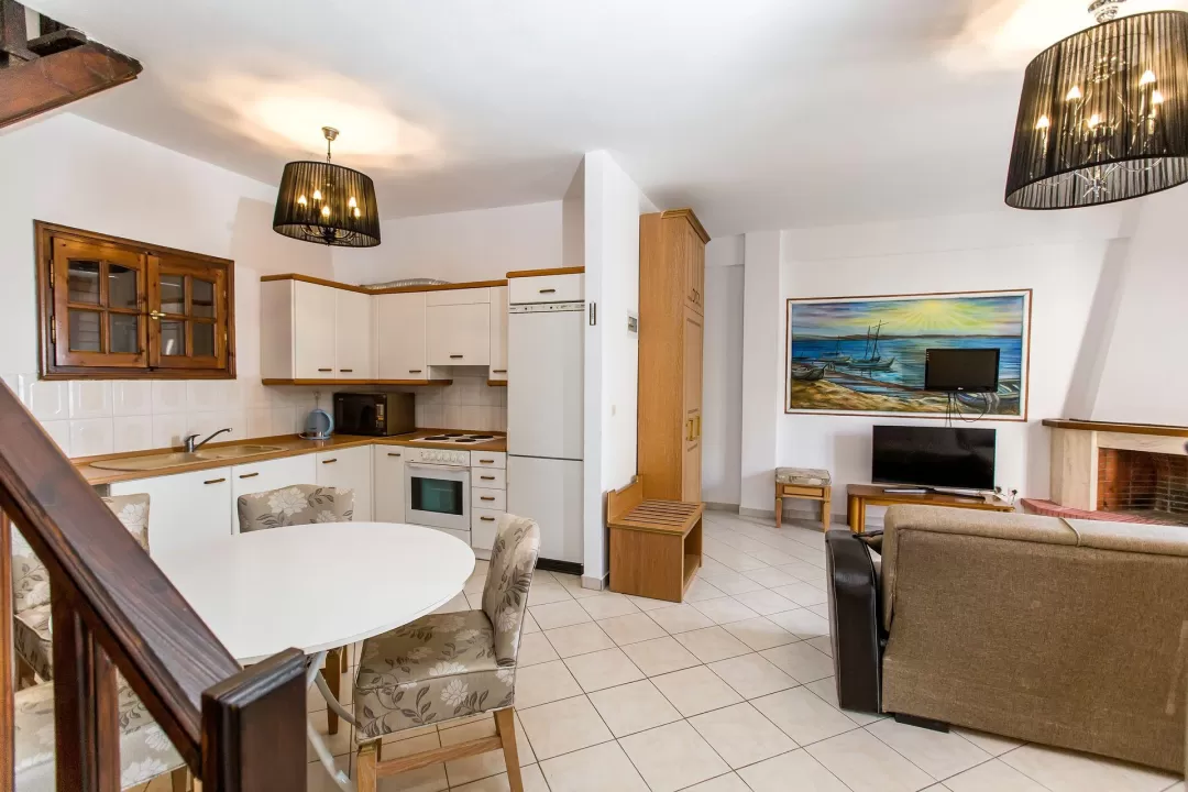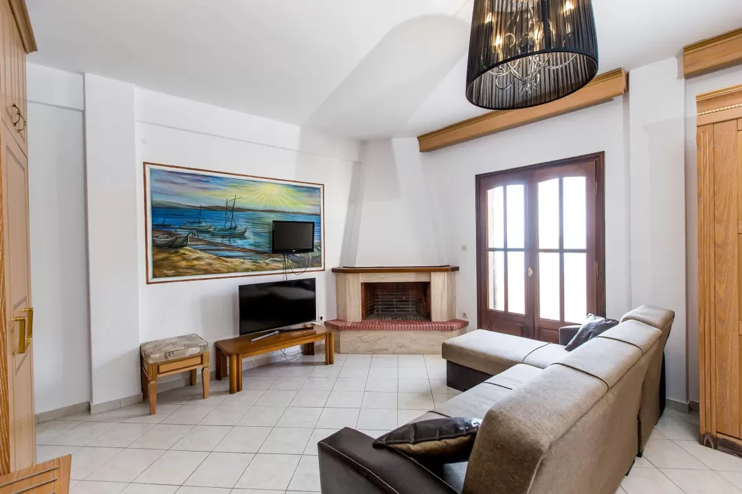 Grčka vila na plaži sa 30 sekundi hoda do plaže Paralia Fourkas, sa pogledom na more, nalazi se u srcu slikovitog glavnog trga sela što znači da možete direktno opustiti se i relaksirati, ili odmah otići i uživati na plaži i u drugim planiranim aktivnostima. Noću, područje oko vile je poznato po lokalnoj hrani, posebno plodovima mora, tako da ima mnoštvo opcija za istraživanje kupovine.