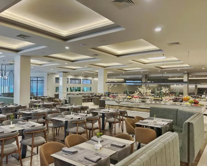 U objektu se nalaze kafe bar i bar, kao i četiri restorana sa prijatnom atmosferom i ukusnom hranom. U ponudi je program „all inclusive“. Služe se doručak, ručak i večera, a na zahtev se mogu pripremiti dijetalni, bezglutenski i dečji obroci. Dostupne su i posebne opcije posluživanja i užine.