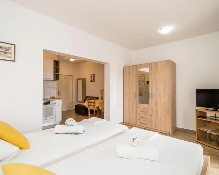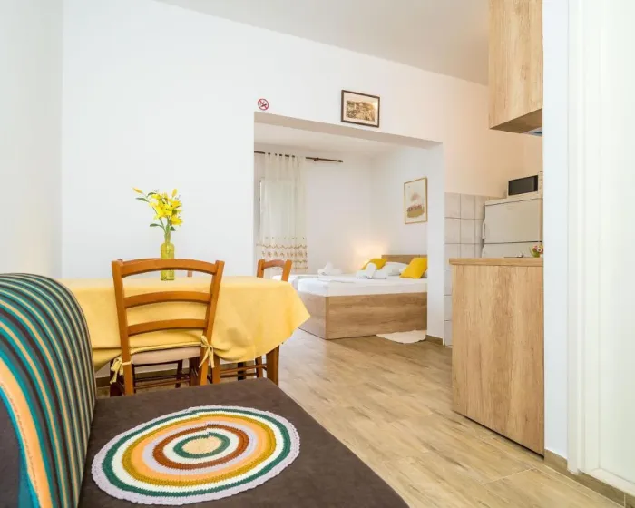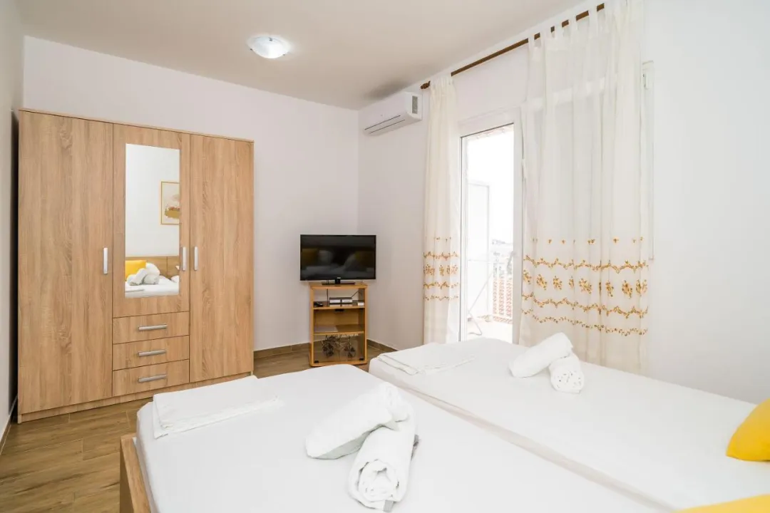 Sve smeštajne jedinice imaju klima uređaj, prostor za sedenje sa satelitskom televizijom i privatno kupatilo sa tušem. Studiji imaju čajnu kuhinju sa trpezarijom. Neki apartmani imaju i balkon.