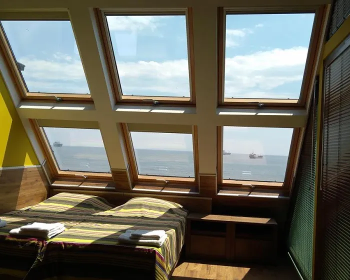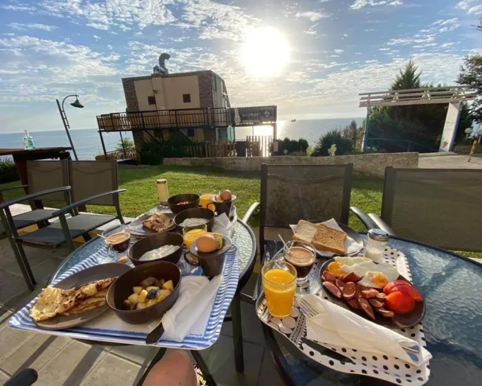Srećne plažne sobe nalaze se na obali u Galati. Apartman ima restoran i terasu. Besplatan WiFi je dostupan.