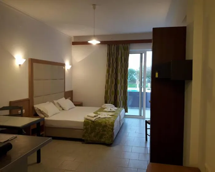 Sobe su opremljene klima-uređajem i centralnim grejanjem kako bi se osigurala prijatna temperatura. Gosti mogu uživati u pogledu na planine sa balkona ili terase. Sobe imaju bračni krevet i kauč na razvlačenje, dok su dodatni ležajevi dostupni na zahtev. Sef omogućava sigurno čuvanje ličnih stvari. U sobama se nalazi i čajna kuhinja. Standardna oprema uključuje telefon i besplatan WiFi. Kupatila su opremljena tušem. Smeštaj raspolaže porodičnim i sobama za pušače.