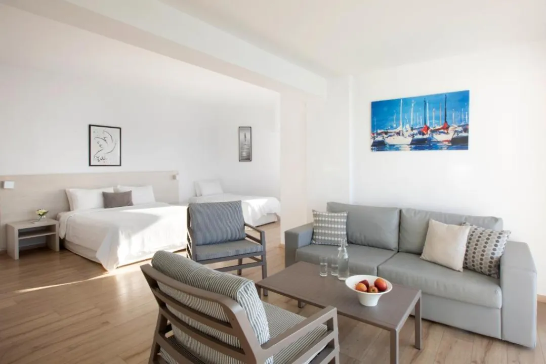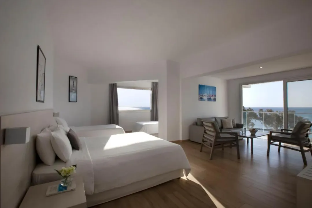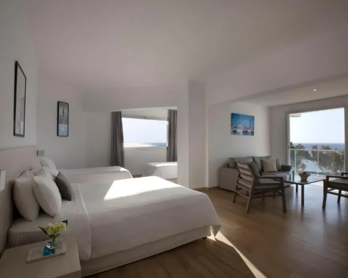 Klimatizacija i centralno grejanje osiguravaju da sobe održavaju ugodne temperature. Gosti mogu uživati u pogledu na more sa balkona ili terase. Sobe imaju bračni krevet i kauč na razvlačenje. Dodatni kreveti se mogu zatražiti. Na raspolaganju su i sef, mini bar i radni sto. Dodatne karakteristike uključuju frižider, mini frižider i stanicu za čaj/kafu. Tu su i set za peglanje i mašina za sušenje veša. Telefon sa direktnim biranjem, TV sa satelitskim/kablovskim kanalima, radio, utični adapter, budilnik i ViFi (bez doplate) pružaju sve neophodne za ugodan odmor. Papuče su uključene. Fen za kosu i telefon su dostupni u kupatilima, koja su opremljena tušem i kadom. Kao posebnost, kupatila su takođe opskrbljena kozmetičkim proizvodima i izborom peškira. Gosti takođe mogu rezervisati sobe prilagođene osobama u invalidskim kolicima sa kupatilima dostupnim za invalidska kolica. Hotel ima porodične sobe i sobe za nepušače.