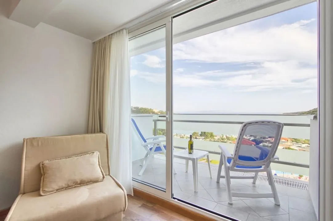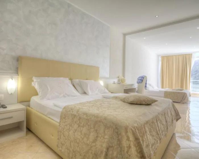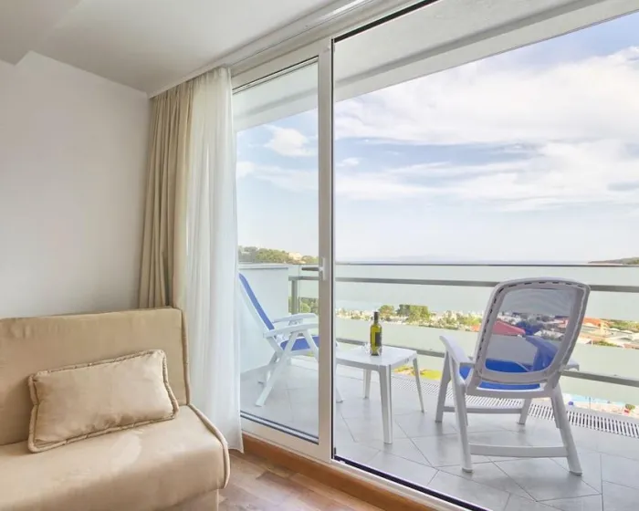 Sobe su opremljene klima uređajem i centralnim grejanjem. Većina smeštajnih jedinica ima balkon sa delimičnim pogledom na more. Na raspolaganju su bračni krevet i sofa na razvlačenje, a u pojedinim jedinicama postoje i odvojene spavaće sobe. Za decu se mogu obezbediti dodatni i dečji kreveti. Gostima je na raspolaganju sef. Standardnu opremu čini i frižider. Telefon, televizor, radio i WiFi dodatno doprinose udobnosti boravka. Kupatila su opremljena tušem ili kadom i fenom za kosu. Dostupna su i kupatila prilagođena osobama sa invaliditetom. Hotel raspolaže nepušačkim sobama.