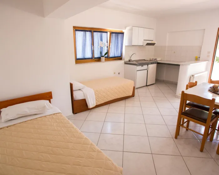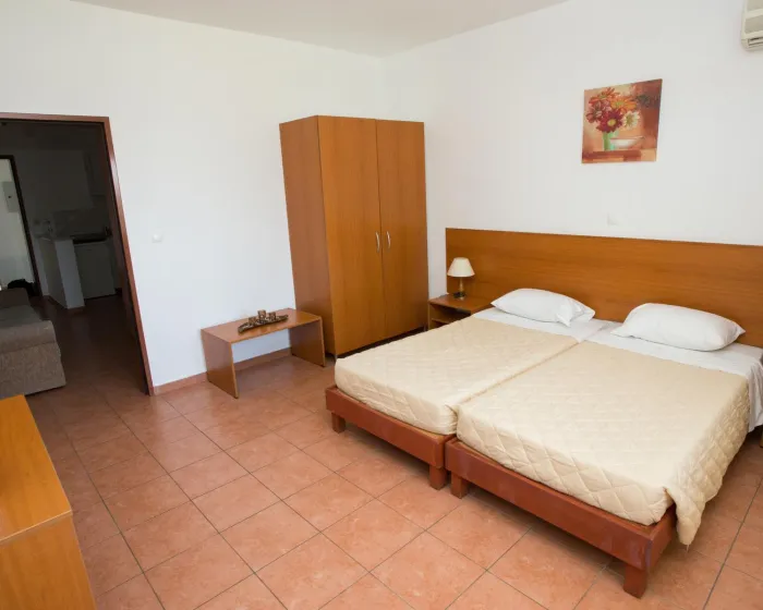 Sobe imaju dnevnu sobu, kuhinju i kupatilo. Klima uređaj i centralno grejanje obezbeđuju udobne temperature. Balkon je uključen kao standard u nekim sobama. Sobe imaju bračni krevet ili sofu na razvlačenje. Mogu se rezervisati odvojene spavaće sobe. Kreveti za decu i dodatni kreveti mogu se zatražiti za mlađe goste. Kuhinja opremljena frižiderom i aparatom za kafu/čaj. Direktno birani telefon, TV i WiFi (bez dodatne naplate) pružaju sve što je potrebno za udoban odmor. Kupatila su opremljena tušem i kadom, kao i fenom za kosu. Hotel ima sobe za nepušače.