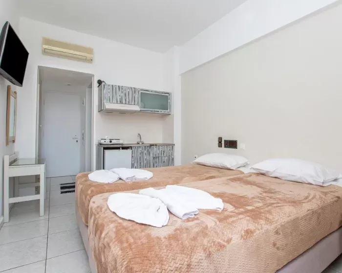 Klima uređaj osigurava da sobe održavaju ugodne temperature. Gosti mogu opuštati na balkonu ili terasi. Sobe sadrže kauč na razvlačenje. Sef, minibar i radni sto su takođe dostupni. Kuhinja je opremljena frižiderom. Telefon, TV i WiFi (bez dodatne naplate) pružaju sve esencijale za udoban odmor. Kupatila su opremljena tušem i kadom, kao i fenom za kosu. Kao posebna karakteristika, kupatila takođe sadrže kozmetičke proizvode i izbor peškira. Hotel ima porodične sobe i sobe za nepušače.