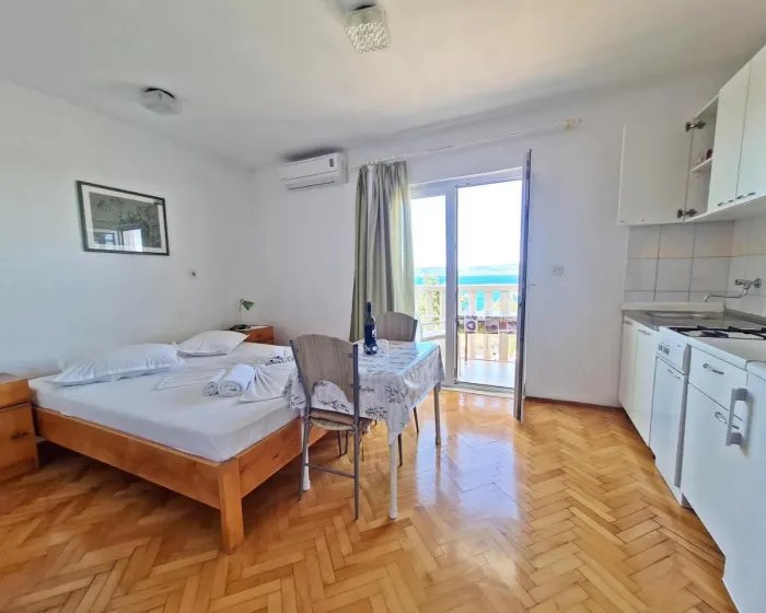 Sa tišinom i pogledom na ulicu, studio u prizemlju sa terasom se nalazi u Brelima, na 31 kilometar od Plavog jezera.