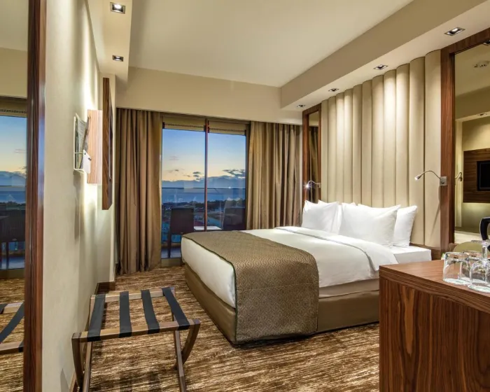 Klima uređaj i podesivo centralno grejanje osiguravaju da sobe održavaju udobne temperature. Gosti mogu da se opuste i uživaju u pogledu na more sa balkona ili privatne terase nekih soba. Sobe imaju bračni krevet, krevet queen-size ili krevet king-size. Dodatni kreveti mogu biti zatraženi. Tu je i sef i radni sto ili, uz dodatnu naknadu, minibar. Gosti će pronaći i stanicu za čaj/kafu uključenu među standardnim sadržajima. Dodatni sadržaji uključuju set za peglanje i peglu za pantalone. Direktni telefonski aparat, televizor sa kablovskim kanalima i WiFi (bez dodatnih troškova) pružaju sve potrebno za udoban odmor. Kupatila su opremljena tušem i kadom. Fen za kosu, bade mantili i telefon su dostupni za svakodnevnu upotrebu. Za dodatnu udobnost u kupatilu, gostima se nude kozmetički proizvodi. Sobe prilagođene za osobe sa invaliditetom sa kupatilima prilagođenim za invalide takođe su dostupne. Hotel ima sobe za nepušače i sobe za pušače.