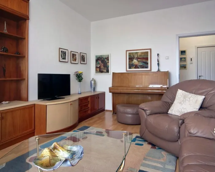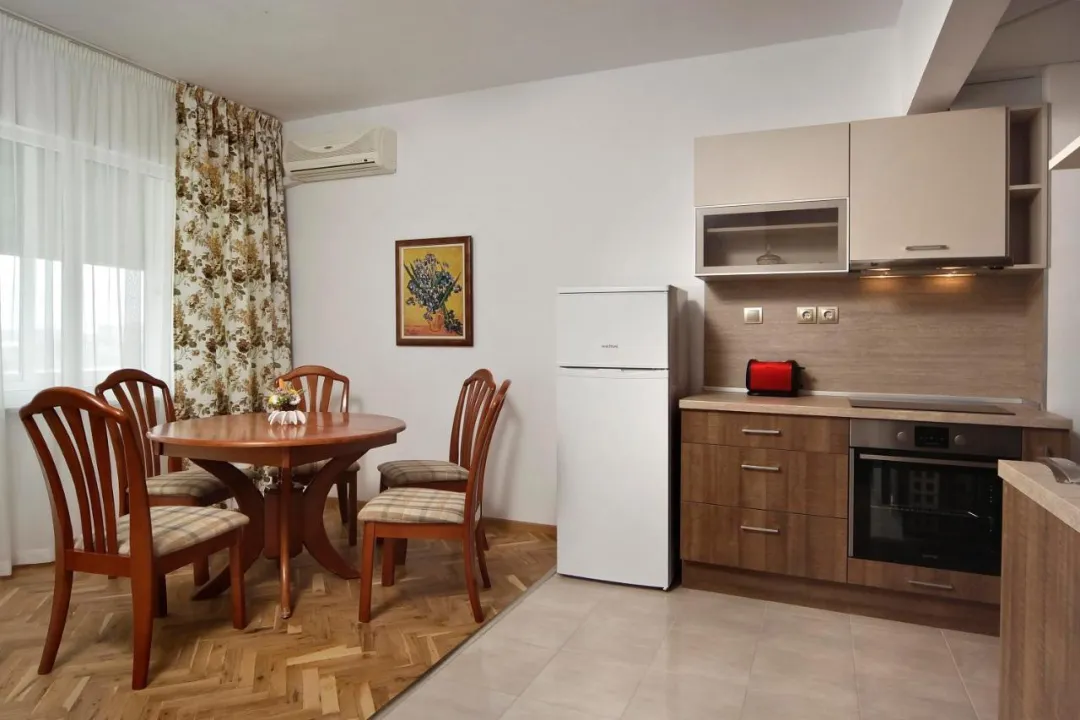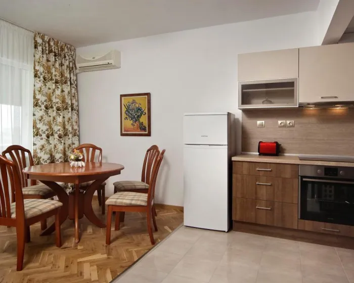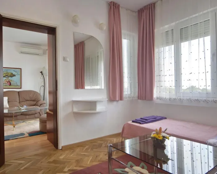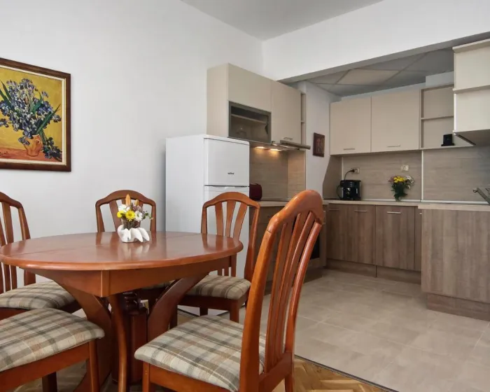 Prostrani apartman ima 2 spavaće sobe, 1 kupatilo, posteljinu, peškire, flat-screen TV sa satelitskim kanalima, trpezariju, potpuno opremljenu kuhinju i balkon sa pogledom na more. Radi veće privatnosti, smeštaj ima zaseban ulaz.