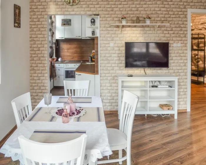 Apartman ima 2 spavaće sobe, 2 kupatila, posteljinu, peškire, TV sa ravnim ekranom i kablovskim kanalima, trpezariju, potpuno opremljenu kuhinju i balkon sa pogledom na grad.
