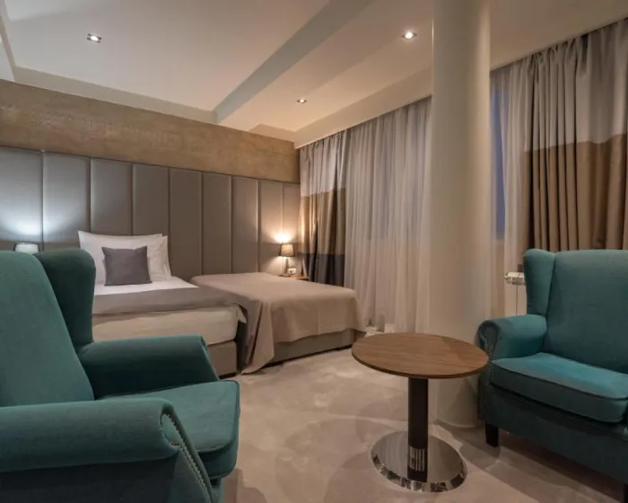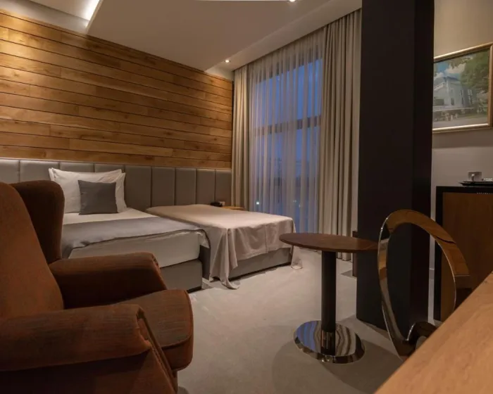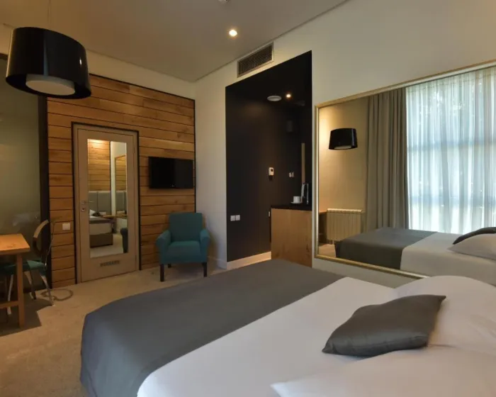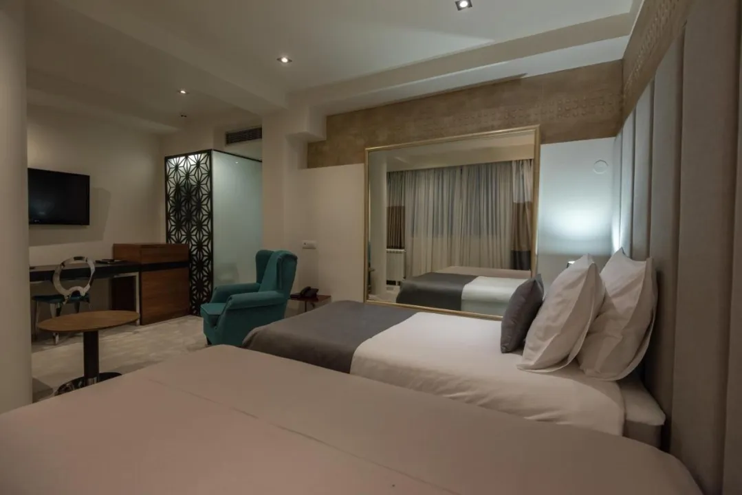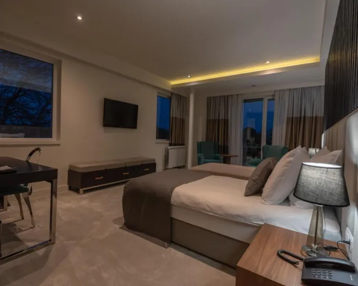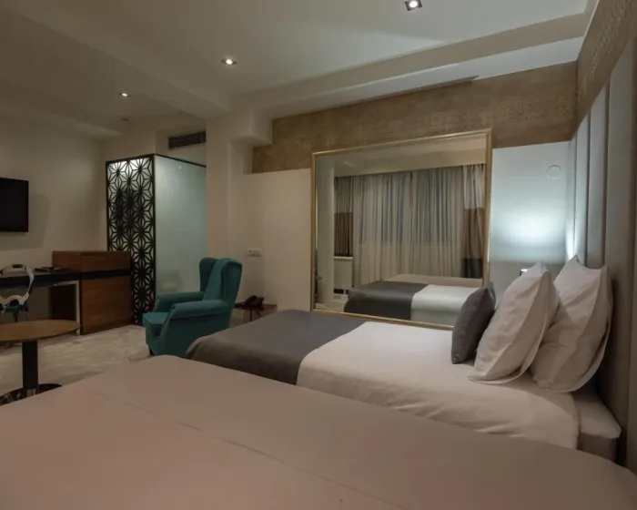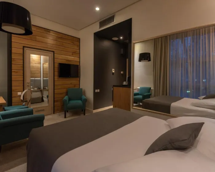 Sobe su opremljene klima uređajem i centralnim grejanjem. Sve sobe su sa tepihom i uključuju bračni krevet. Dodatni kreveti mogu biti zatraženi. Takođe su dostupan sef, minibar i radni sto. Takođe je obezbeđena čajna kuhinja. Telefon, televizor sa satelitskim/kablovskim kanalima, radio, alarmni sat i WiFi (bez dodatne naknade) obezbeđuju optimalnu udobnost. Gosti će takođe pronaći papuče u svojim sobama. Fen za kosu i bade mantili su obezbeđeni u kupatilima, koje uključuju tuš kabinu. Kao posebna karakteristika, kupatila su takođe opremljena kozmetičkim proizvodima i izborom peškira. Hotel ima porodične sobe i sobe za nepušače.