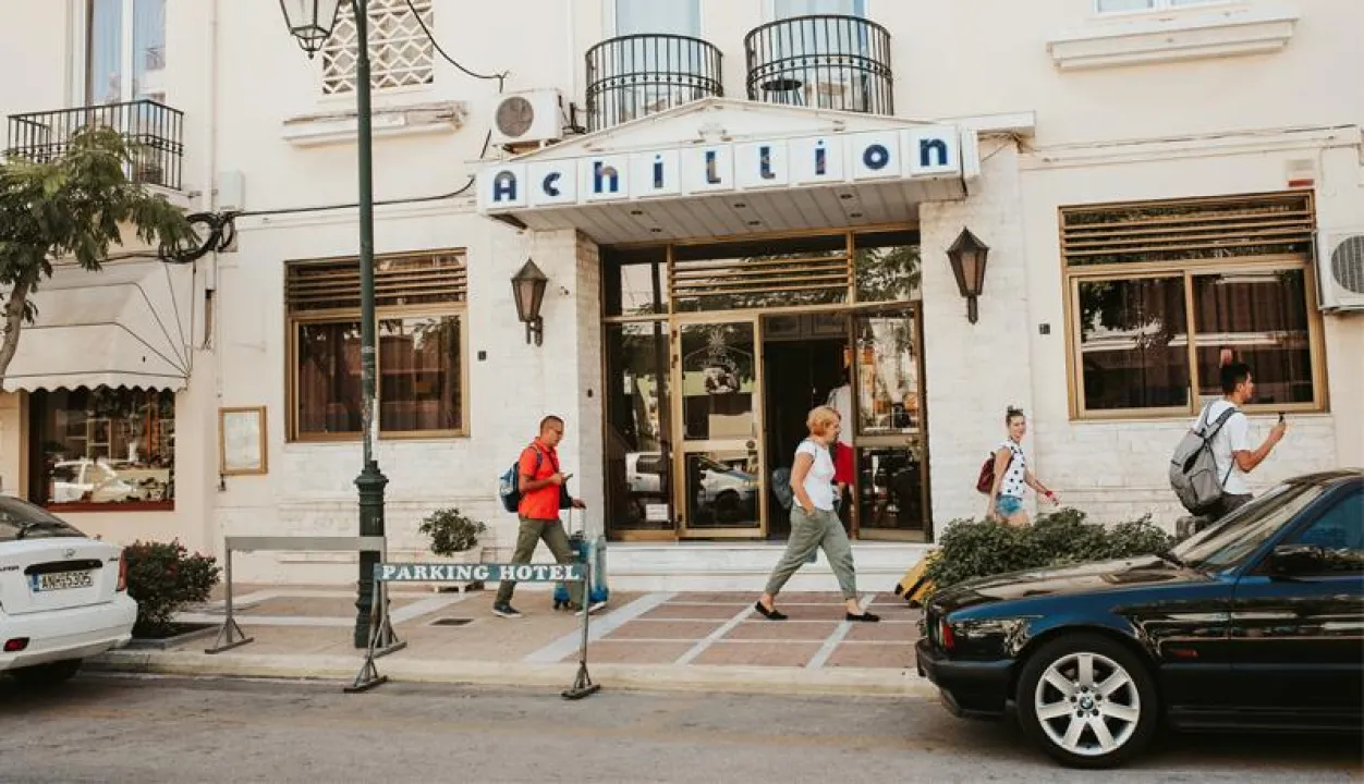Hotel Achillion Lutraki se nalazi u centru letovališta Lutraki na oko 20 metara udaljenosti od šljunkovite plaže. Hotel je potpuno renoviran 2016. godine. Smešten je na šetalištu uz plažu i u blizini se nalaze brojne prodavnice, kafići, restorani, barovi, taverne.