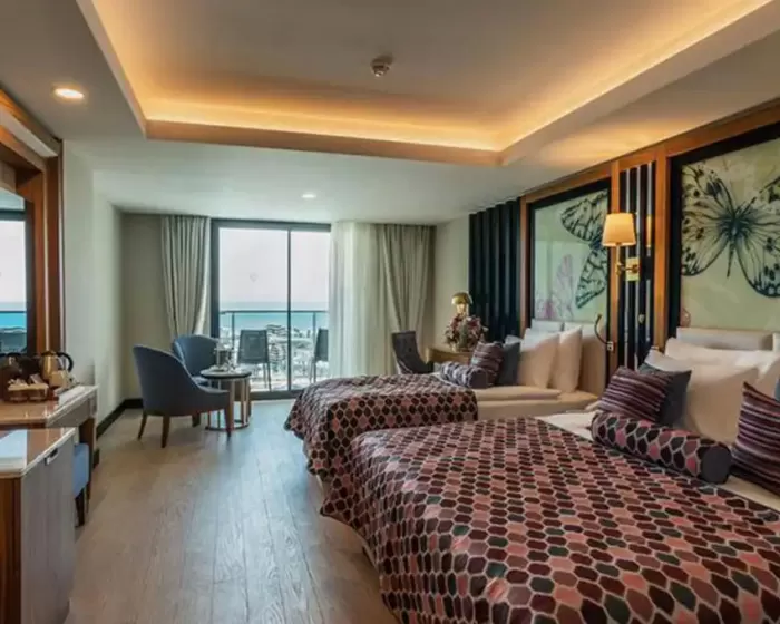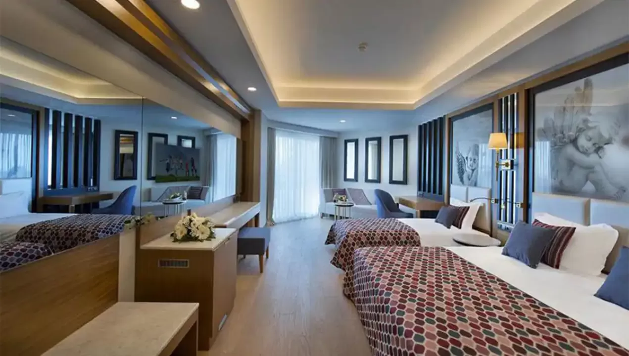 Ukupan broj smeštajnih jedinica je 525. 402 standard soba ( 31m², spavaća soba, kupatilo, max. 2 + 1 osoba), 120 Family soba ( 50-60m², 2 spavaće sobe odvojene vratima, max. 4 osobe), 3 sobe za osobe sa posebnim potrebama. Sve smeštajne jedinice imaju kupatilo sa kadom ili tuš kabinom, fen, klimu, direktnu telefonsku liniju, mini bar (voda, bezalkoholna pića i pivo se dopunjuju svakodnevno), set za čaj i kafu, sef, SAT TV i muzičke kanale, laminat, balkon ili terasu.