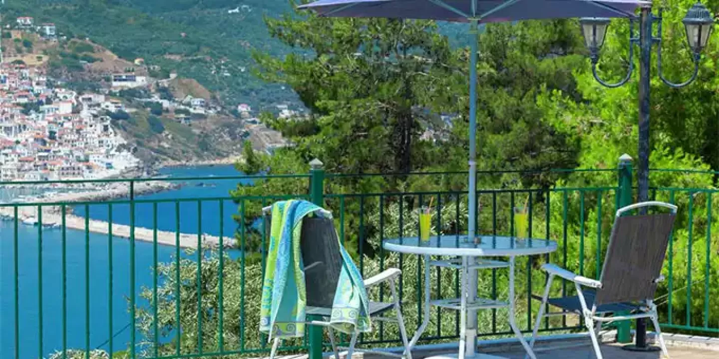 Hotel Aegeon Skopelos grad Skopelos se nalazi na oko 450 metara udaljenosti od plaže i na oko 1.5 kilometar od luke i centra. Hotel je okružen prirodom i zelenilom sa prelepim pogledom na grad Skopelos.