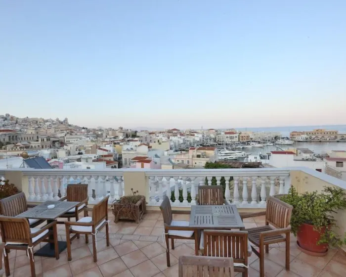 Hotel Aegli Siros hotel se nalazi u Ermoupilu, u centru Grada, nedaleko od luke i svih gradskih dešavanja ostrva Syros. Hotel ima 13 soba i uključuje lift i recepciju. Kako bi osigurao gostima udoban i opuštajući boravak, hotel pruža različite usluge i sadržaje, uključujući uslugu čuvanja prtljaga, sef, igraonicu i uslugu posluge u sobama. Bežični pristup internetu u javnim prostorima (bez dodatne naplate) omogućava gostima da ostanu povezani. Gosti koji dolaze automobilom mogu parkirati svoja vozila na parkingu. Toplo vreme se može uživati na terasi.