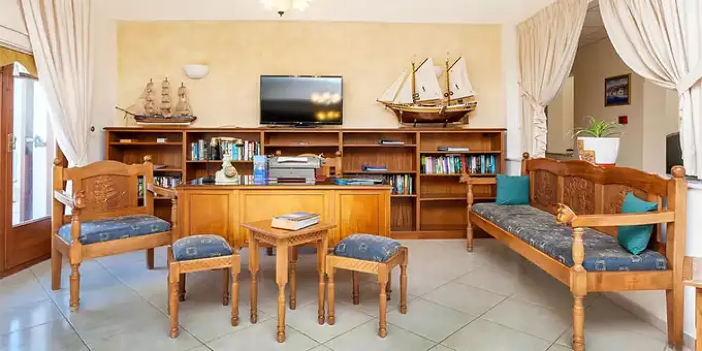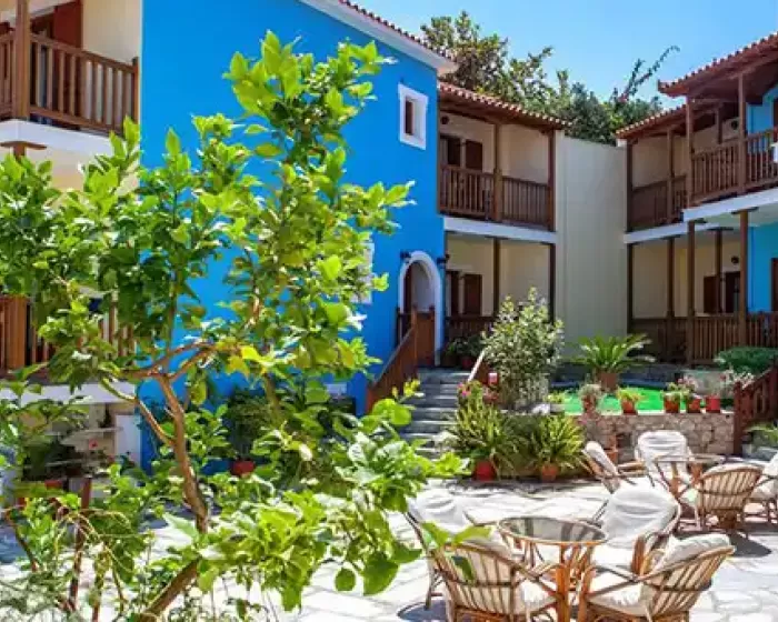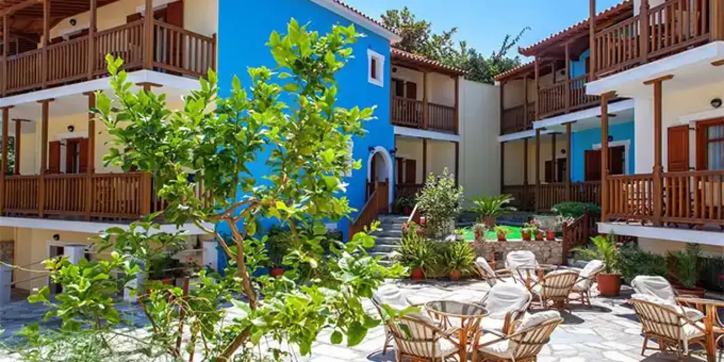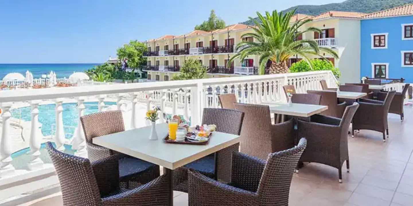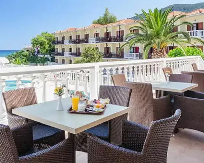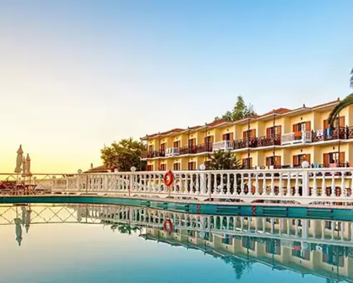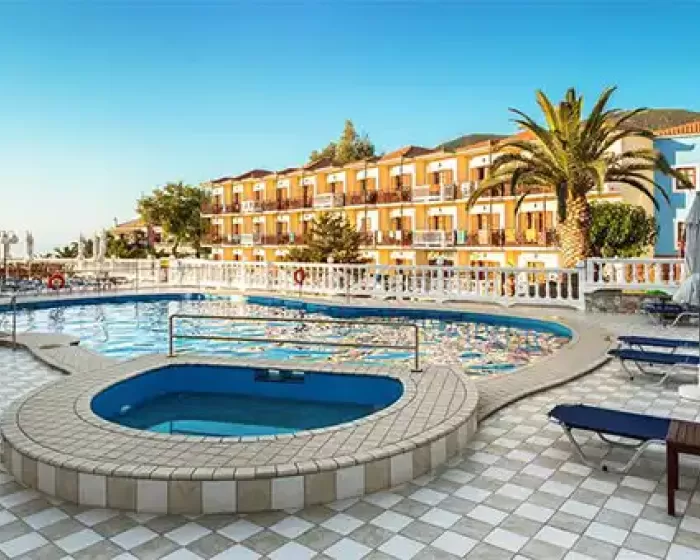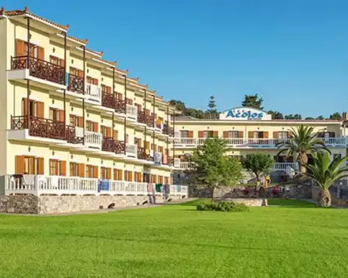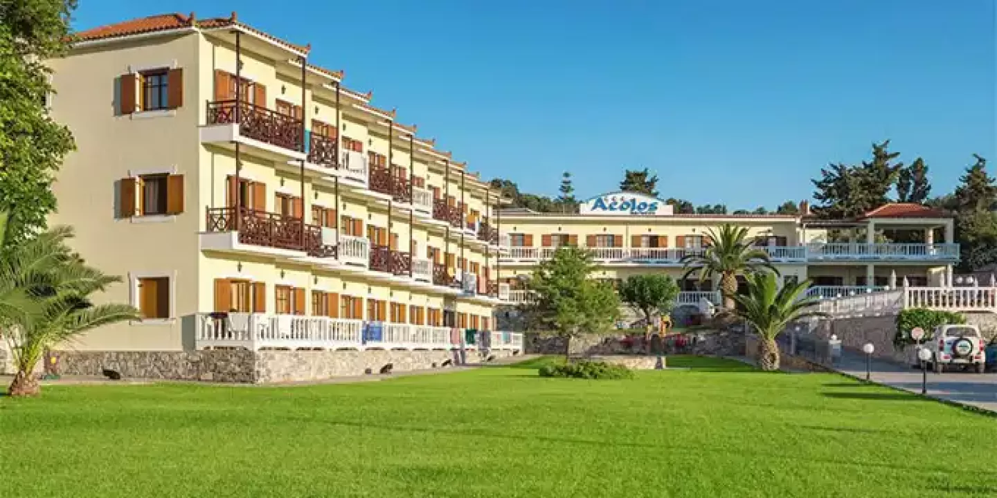 Hotel Aeolos Skopelos grad Skopelos se nalazi preko puta luke, na obali, oko 650 metara od centra, a do prve uredjena plaža je oko 4 kilometra. Aeolos se sastoji se od šezdeset soba u jednoj zgradi na tri sprata.