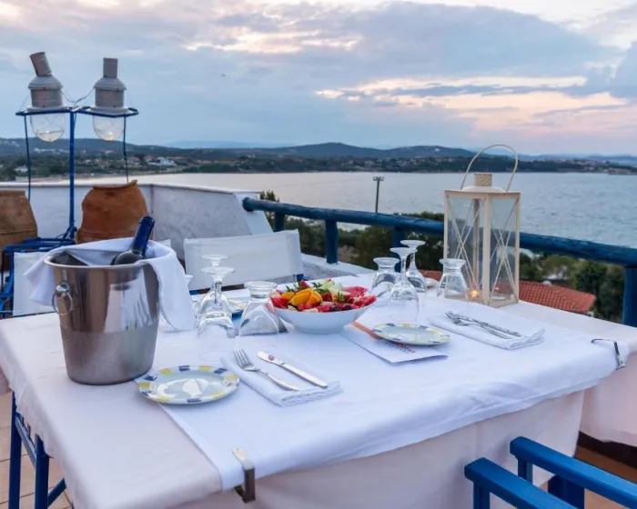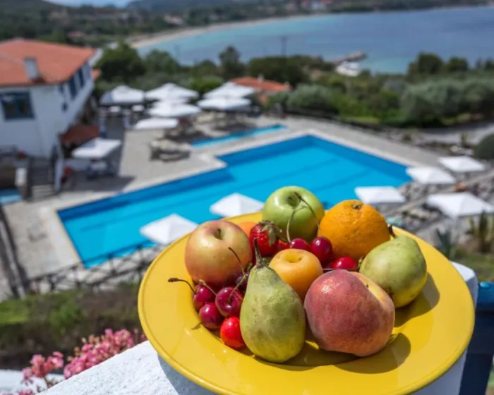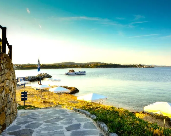 Hotel Agionissi Resort Ammouliani se nalazi na ostrvu Amouliani, jedinstvenom ostrvu Halkidikija, nasuprot planine Atos. Smešten je 1500 metara od centra sela. Ispred hotela se nalazi mala, slikovita plaža sa peskom i malim šljunkom, lako dostupna gostima, dok je plaža Port Aghios sa plavom zastavom udaljena samo 500 metara.