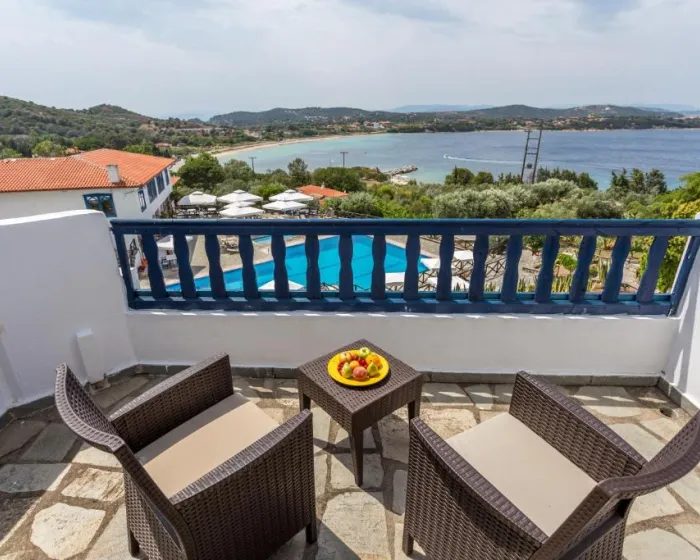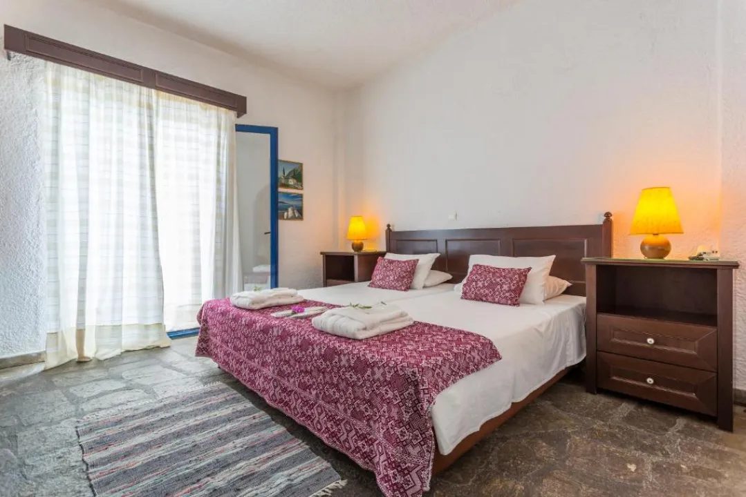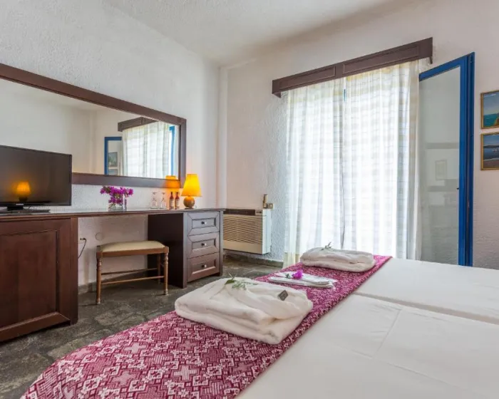 Sobe su opremljene klima uređajem i centralnim grejanjem, a gosti mogu uživati u pogledu na more sa balkona ili privatne terase nekih soba. Sobe imaju krevet king-size i kauč na razvlačenje, dok su sef, minibar i radni sto takođe dostupni. Za udobnost gostiju dostupan je pegla za pantalone, a direktni telefonski poziv, televizor sa satelitskim/kabel kanalima, radio i WiFi (bez dodatnih troškova) obezbeđeni su. Kupatila su opremljena tušem i kadaom, kao i fenom za kosu, dok su dostupne i sobe prilagođene osobama sa invaliditetom sa pristupačnim kupatilima. Kompleks poseduje porodične sobe i sobe za nepušače.