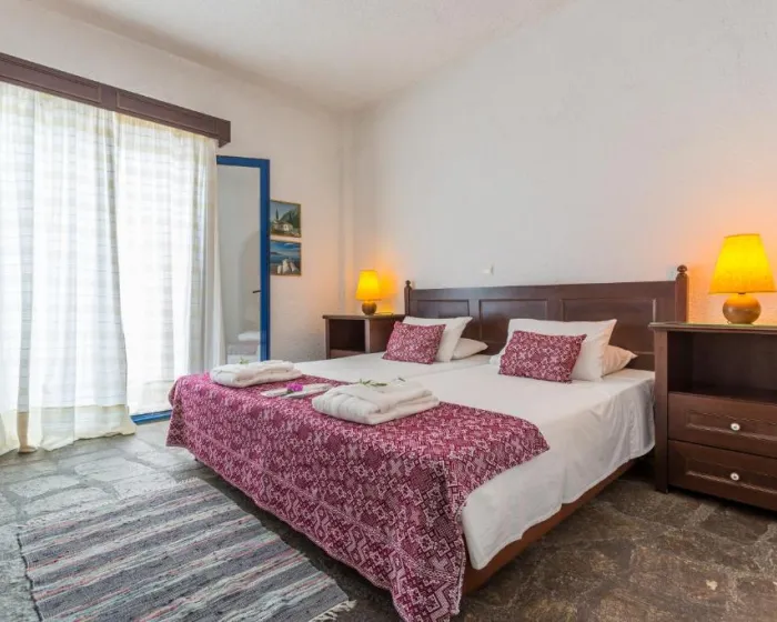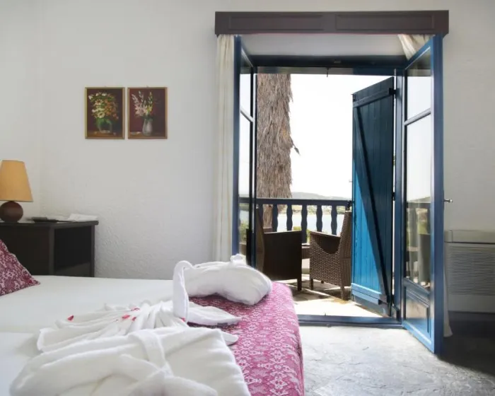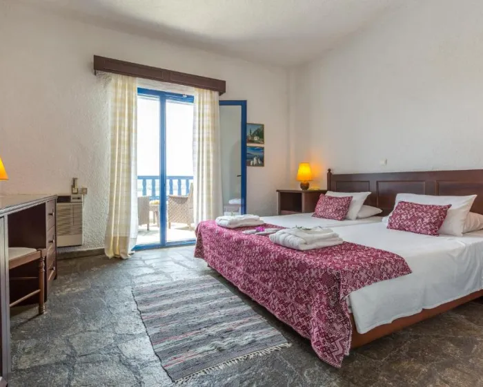 Standard soba pogled more Oko 20 m². Jednostavno i ugodno uredjene, potpuno renovirane 2009. god. Nalaze se na spratovima bungalova, sa pogledom na more. Imaju dva standardna kreveta, predvidjene za dve osobe i bebu.