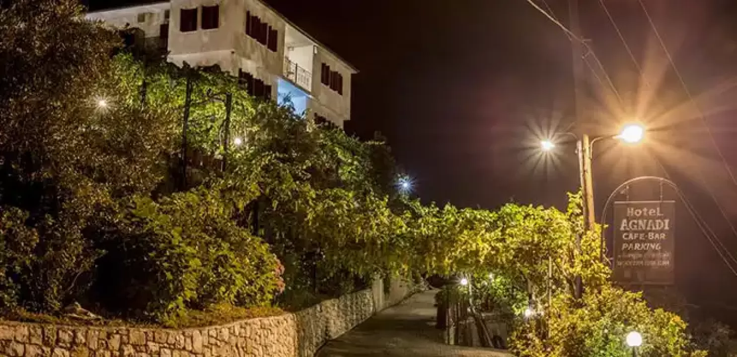 Hotel Agnadi Horefto se nalazi na u mestu Horefto, na uzvišenju, na oko 100 metara udaljenosti od plaže. U neposrednoj blizini hotela nalaze se svi potrebni turistički sadržaji. Selo Zagora je udaljeno nekoliko kilometara.