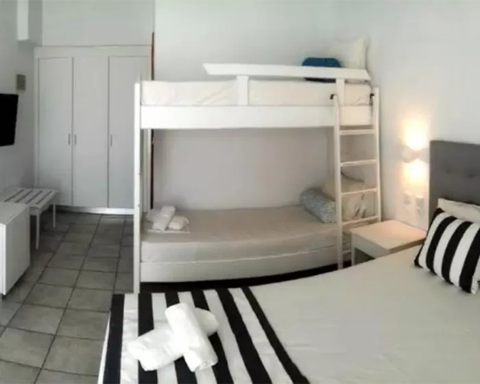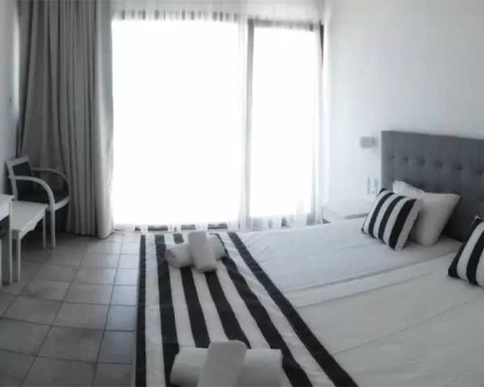 Standard soba pogled bašta:Oko 22 m² , nalaze se u prizemlju.  Predvidjene su za 2-3 osobe, imaju dva singl i jedan pomoćni krevet.Standard soba bočni pogled more:Oko 25 m², nalaze se u prizemlju ili na spratu. Predvidjene su za 2-3 osobe, imaju francuski ili dva odvojena ležaja i pomoćni ležaj. Bočni pogled na more.Standard soba pogled more:Oko 25 m², nalaze se na spratu, sa balkonima sa pogledom na more. Predvidjene su za 2-3 osobe, imaju francuski ili dva ležaja i sofu.Superior soba pogled more:Oko 30 m², smeštene na jednoj od najatraktivnijih pozicija u hotelu, sa pogledom na more. Predvidjene za 2-3 osobe, imaju dva kreveta i sofu.Family soba kreveti na sprat:Oko 25 m², sa balkonom ili verandom sa bočnim pogledom na more. Predvidjene za 2-4 osobe,pogodne za dve odrasle osobe i dvoje dece, imaju francuski ili dva ležaja i krevete na sprat.Junior suite pogled more:Oko 40 m², smešteni na dobrim pozicijama, sa pogledom na more. Predvidjeni za 2 osobe i bebu.Suite duplex pogled bašta:može smestiti maksimalo 4 odrasle osobe i dete, peta osoba spava na krevetu na rasklapanje.