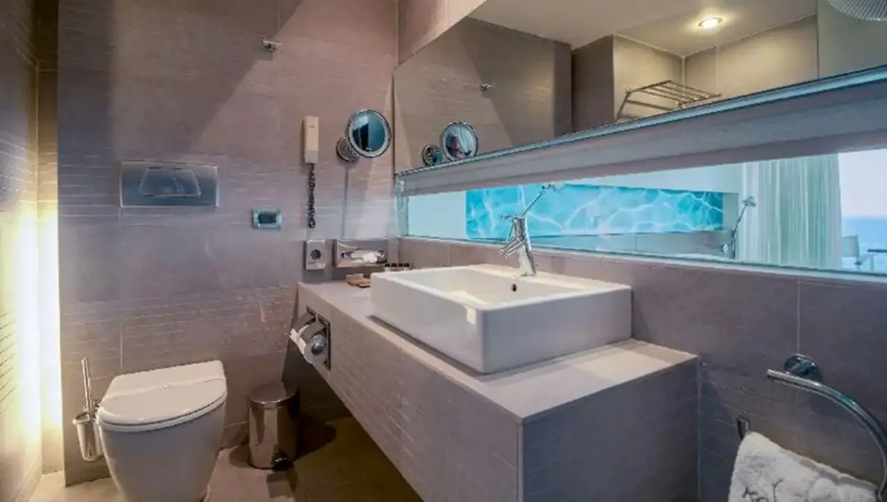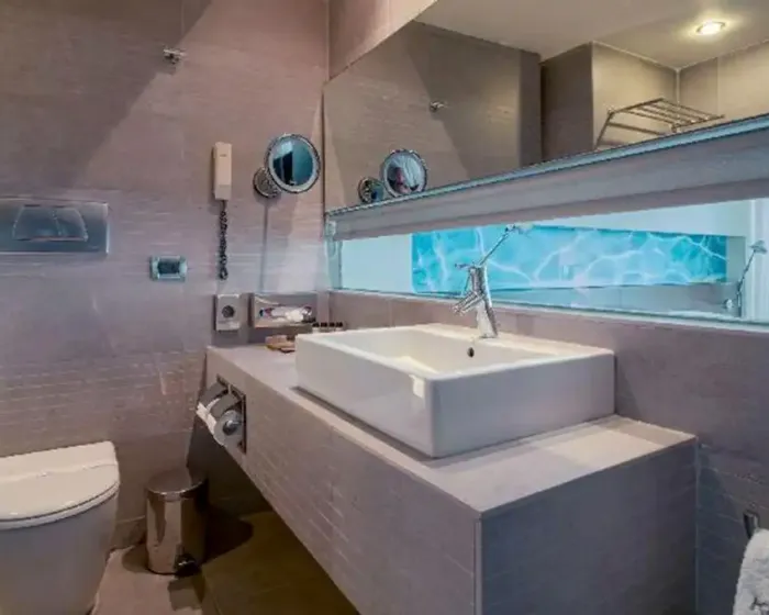 kupatilo, fen, klima-uredjaj, mini-bar, TV, telefon, wifi internet, sef, balkon sa garniturom za sedenje.