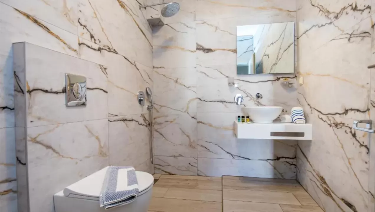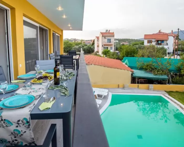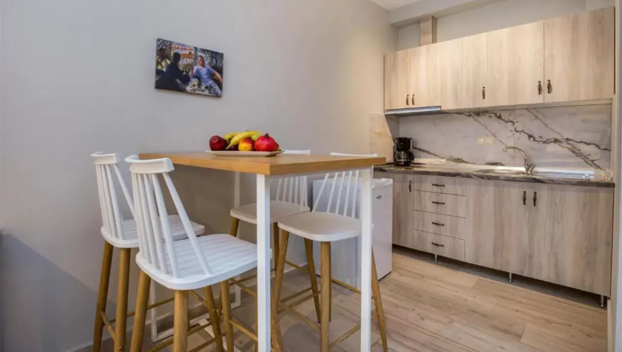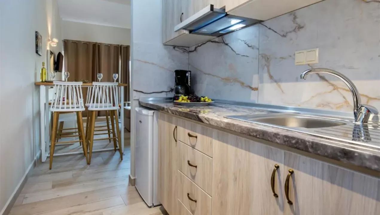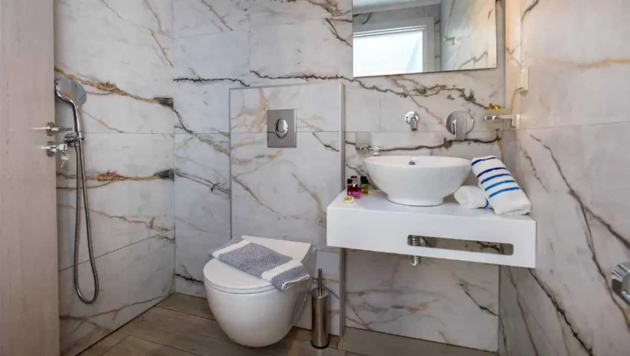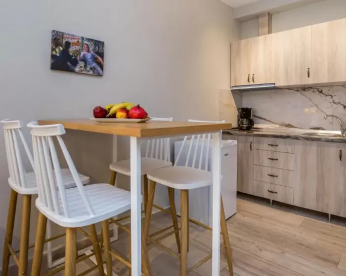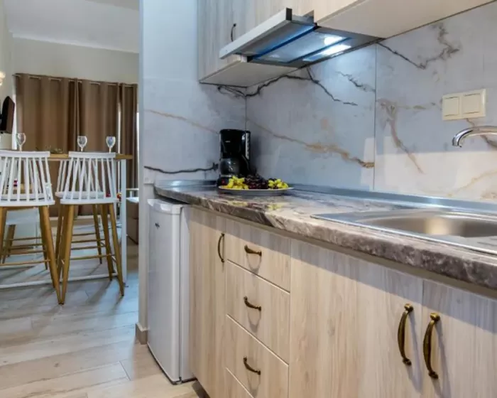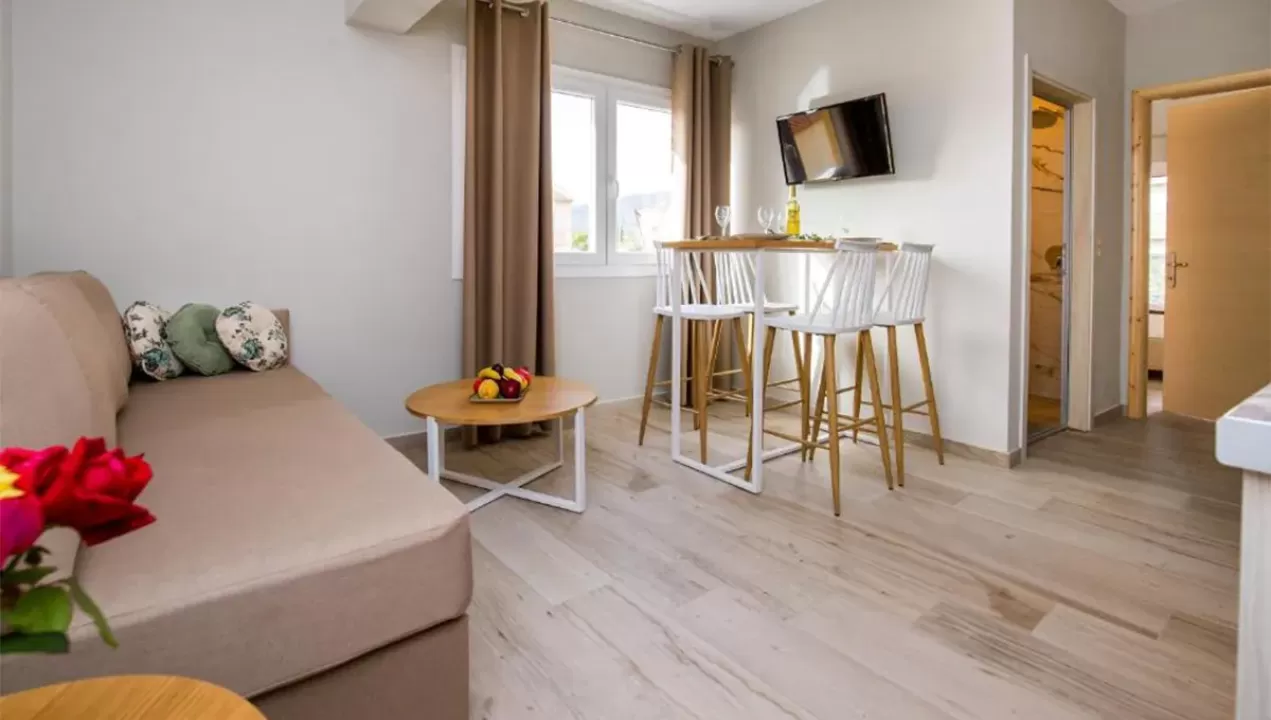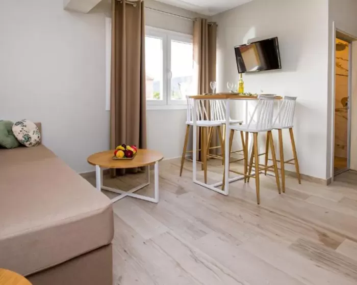 kupatilo, fen, frižider, komplet opremljena kuhinja, klima-uredjaj, LCD-SAT-TV, kreveti extra dužine (preko 2m), terasa sa garniturom za sedenje