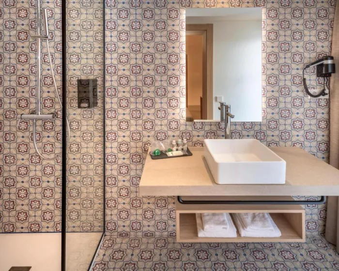 Klima uređaj i individualno podešavanje grejanja osiguravaju da sobe održavaju udobne temperature. Gosti mogu uživati u pogledu na more sa balkona ili terase. Sobe imaju bračni krevet, francuski krevet, kraljevski krevet ili kauč na rasklapanje. Dodatni kreveti se mogu zatražiti. Sef, minibar i radni sto su takođe dostupni. Gosti će takođe pronaći frižider među standardnim sadržajima. Set za peglanje je obezbeđen radi gostove praktičnosti. Takođe su obezbeđeni direktna telefonska linija, TV i WiFi. Kupatila su opremljena tušem, kadom, hidromasažnom kadom i bideom. Dostupni su i pogodni za osobe u invalidskim kolicima sa pristupačnim kupatilima. Hotel ima porodične sobe i sobe za nepušače.