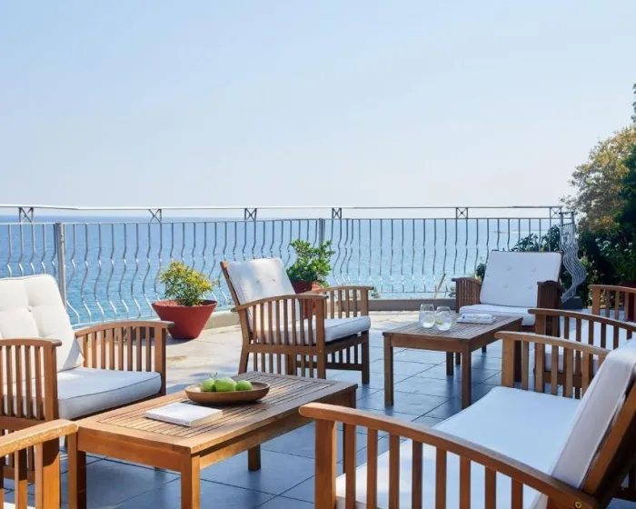 Na terasi su dostupni suncobrani za dodatnu udobnost gostiju.