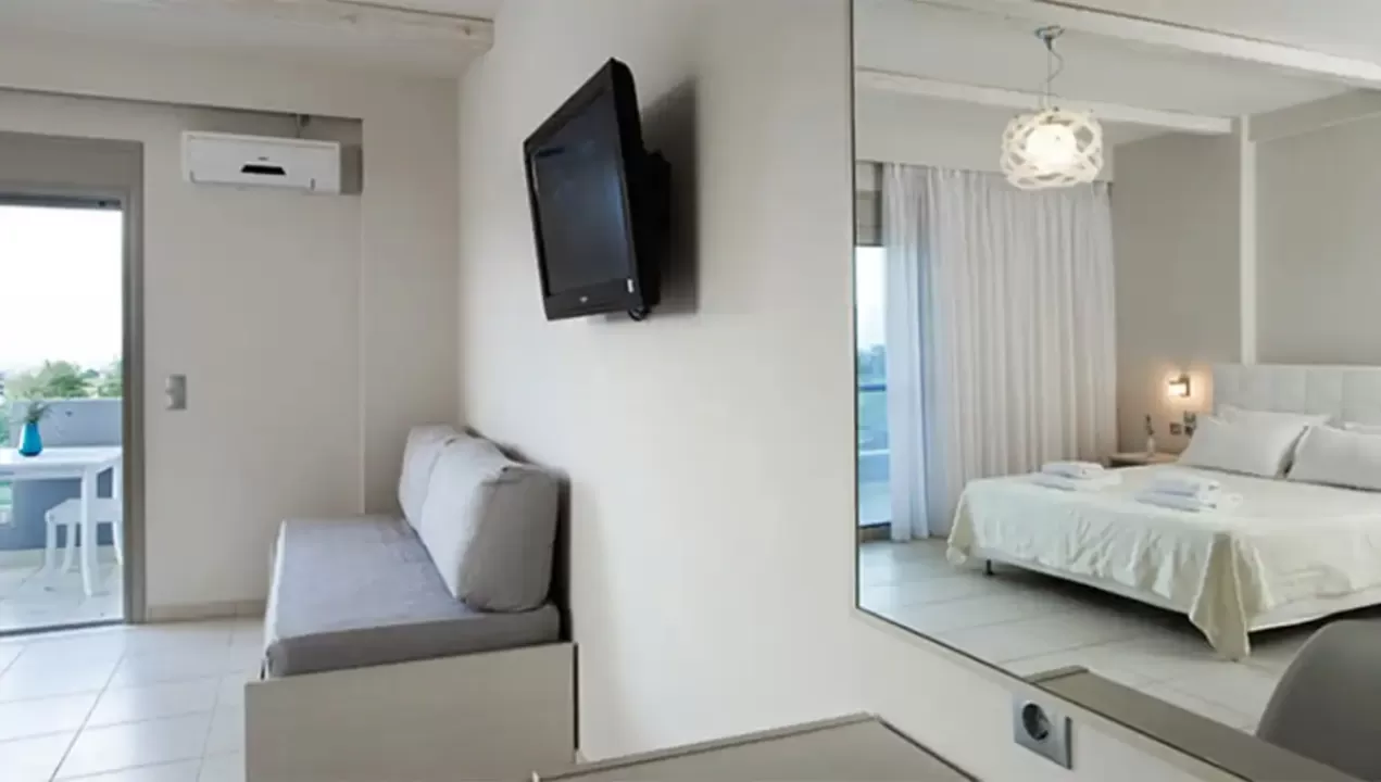 Ukupno 20 soba: Doubles & Triples (~18 m²)., Family Rooms min 4 pax (~25 m²).U sobama: klima, televizor, SAT TV, telefon, Wi-Fi internet, tuš, fen, mini bar (uz doplatu na licu mesta), balkon/terasa.Double Room & Triple Room: francuski ležaj i sofa.Family Room: francuski ležaj i sofa na razvlačenje za dvoje.