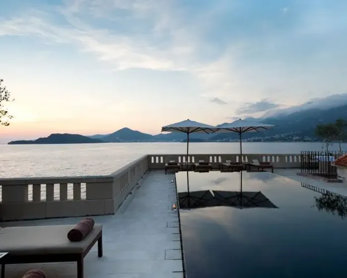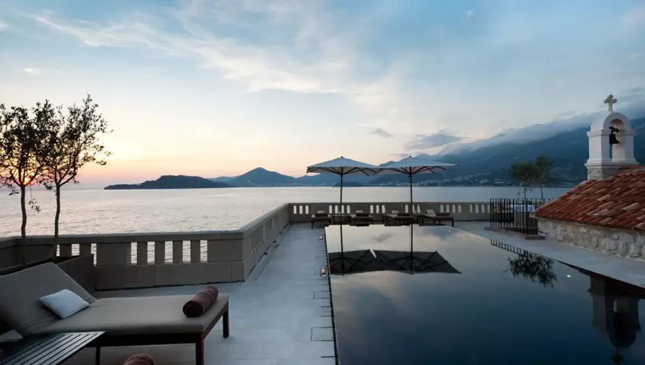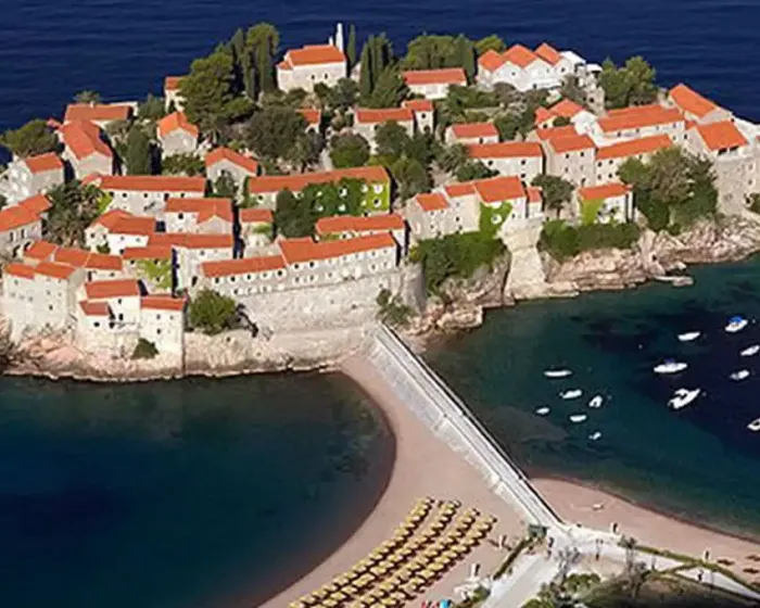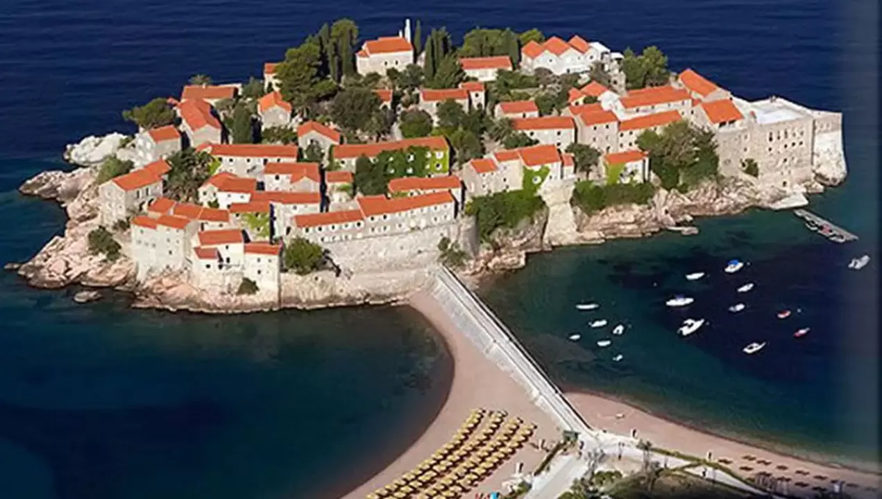 Hotel Aman Sveti Stefan se nalazi na poluostrvu Sveti Stefan i poseduje sopstvenu peščano-šljunkovitu plažu koja je udaljena oko 100 metara od poluostrva i smeštena je sa desne strane prelaza na isto. Aman Sveti Stefan nudi smeštaj na poluostrvu u Grad Hotelu i u Miločeru, Vili Miločer.Ishrana: doručak.