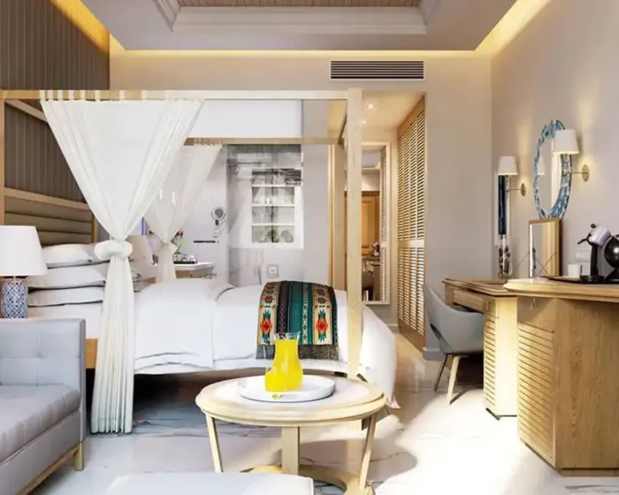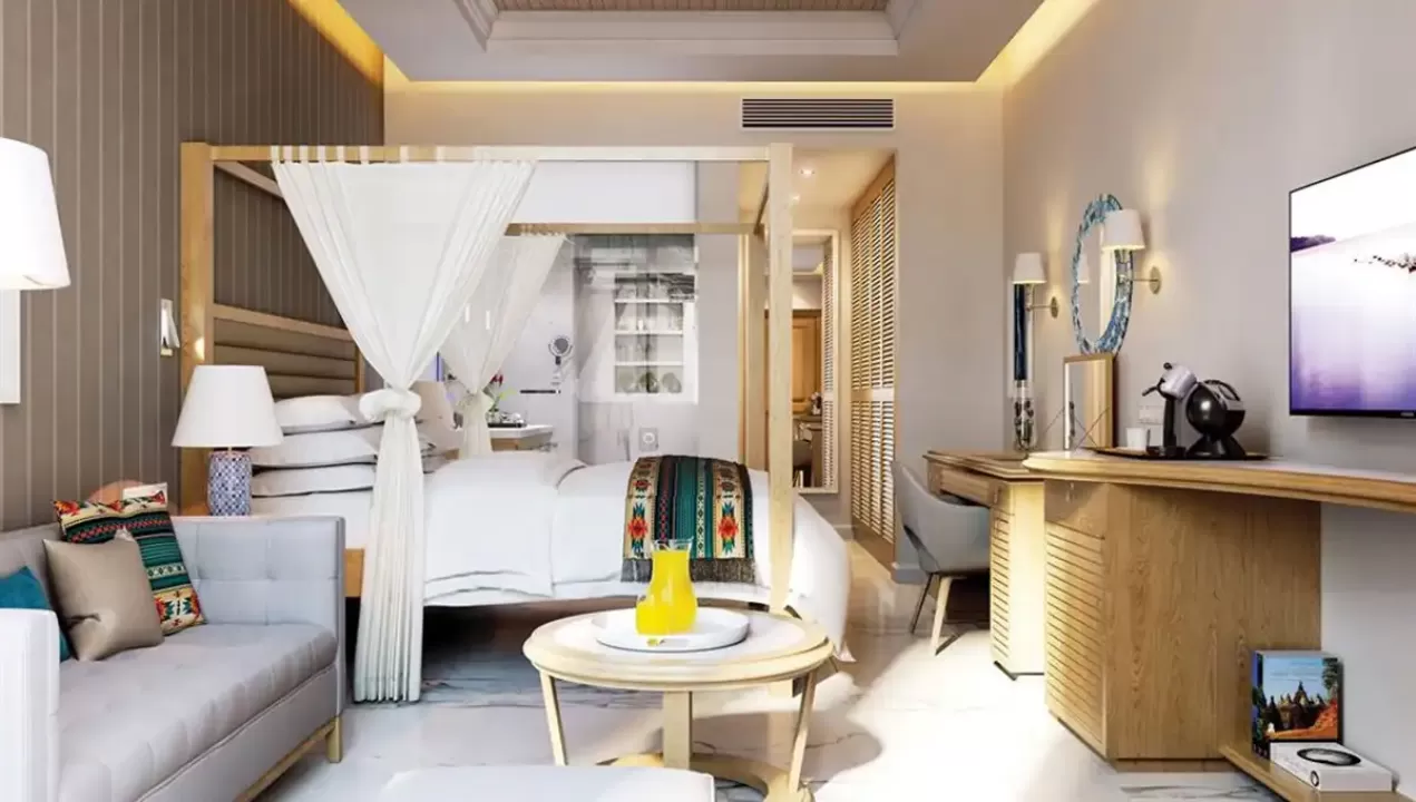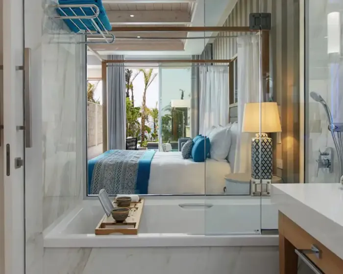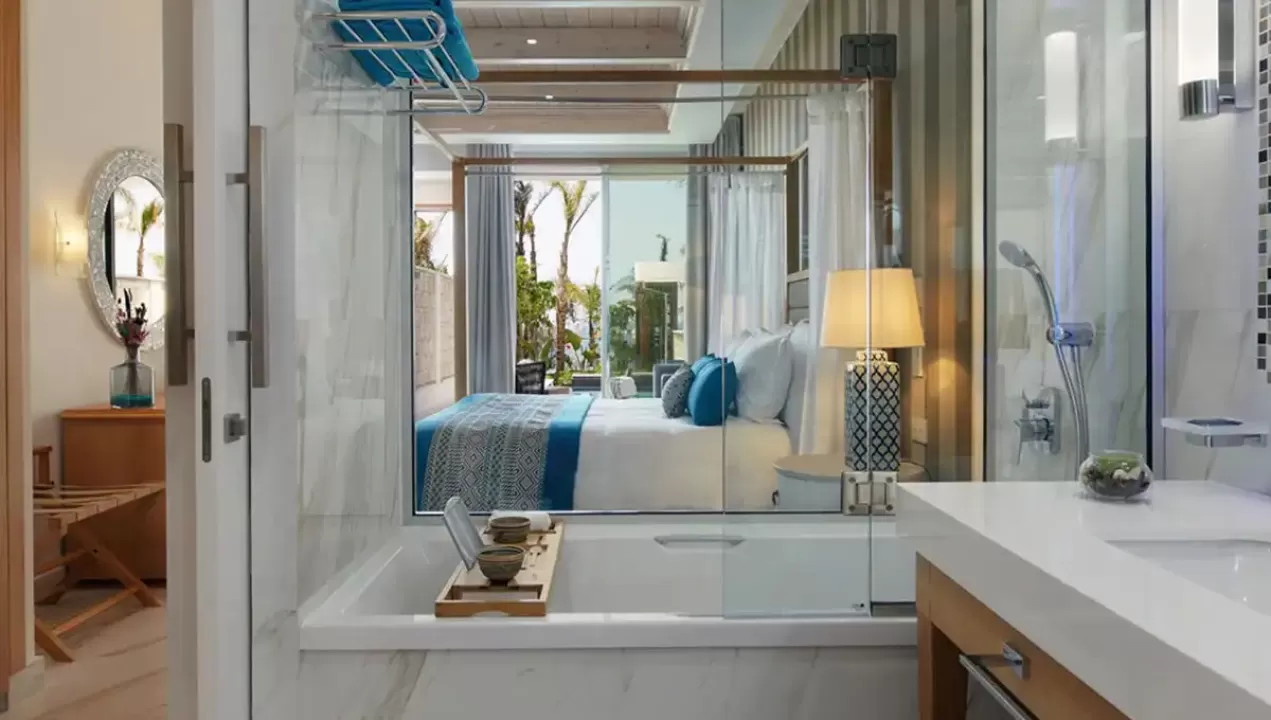 Ukupno 155 soba: Doubles Deluxe SV (~32 m2), Junior Suites SV (~36 m2), Doubles Superior Cabana Private Garden (~32 m2), Doubles Superior Cabana Private Pool (~32 m2), Suites Honeymoon (~36 m2), Suites Executive 1-Bedroom SV (~89 m2).U sobama: luksuz i udobnost, anatomski dušeci, kvalitetne posteljine, TV sa ravnim ekranom, SAT TV, USB port, klima, sef, mini-bar (uz doplatu na licu mesta), kada/tuš, fen za kosu, luksuzni toaletni set, bademantili i papuče, Wi-Fi internet, telefon, čaj i kafa (dnevna dopuna), aparat za kafu Nespresso, pegla, namešten balkon/terasa.Double Deluxe SV (~32 m2) Francuski ležaj ili dva odvojena ležaja, kauč/sofa, stočić za kafu.Junior Suite SV (~36 m2) Francuski ležaj, stočić za kafu, fotelja.Double Superior Cabana Private Garden - Francuski ležaj, sofa.Double Superior Cabana Private Garden (~32 m2) Francuski ležaj, kauč/sofa, stočić za kafu.Double Superior Cabana Private Pool (~32 m2) Francuski ležaj, kauč/sofa, stočić za kafu, privatni bazen.Suite Honeymoon (~36 m2) Francuski ležaj, romantična atmosfera, stočić za kafu, fotelja.Suite Executive 1-Bedroom SV (~89 m2) Salon, trpezarijski sto i 6 stolica, dnevni boravak sa dva kauča/sofe, TV 49''; odvojena spavaća soba sa francuskim ležajem, TV; kupatilo - kada i kišni tuš; opremljen balkon/terasa - dvosed na razvlačenje, sto, 2 ležaljke.Tip dodatnog ležaja - sofa/fotelja/krevet na rasklapanje.