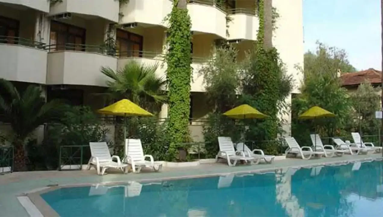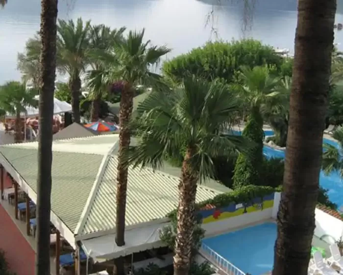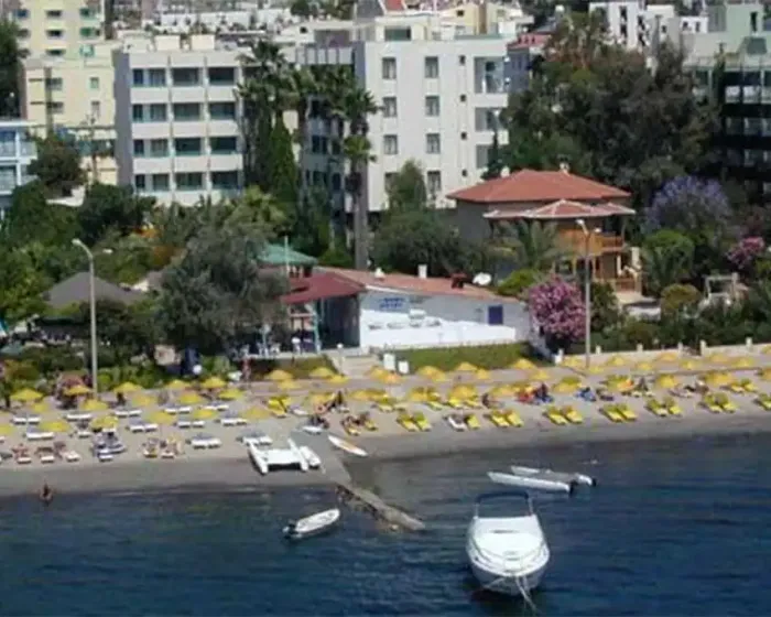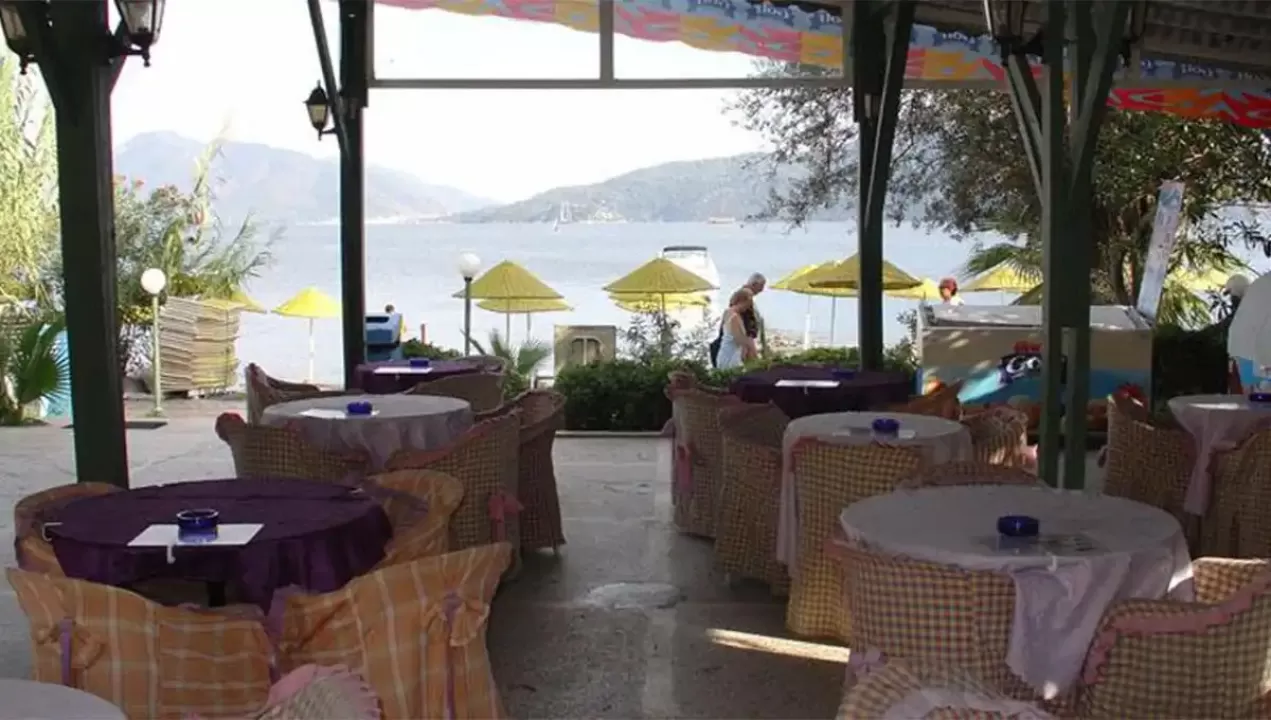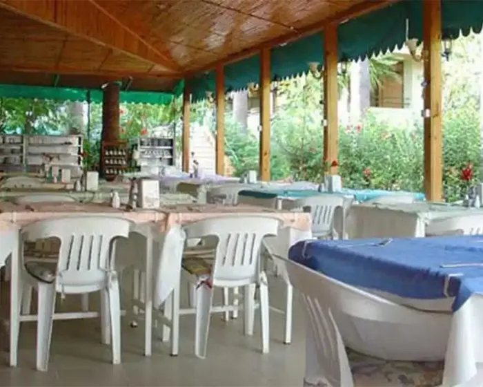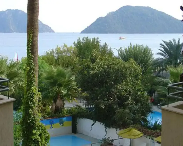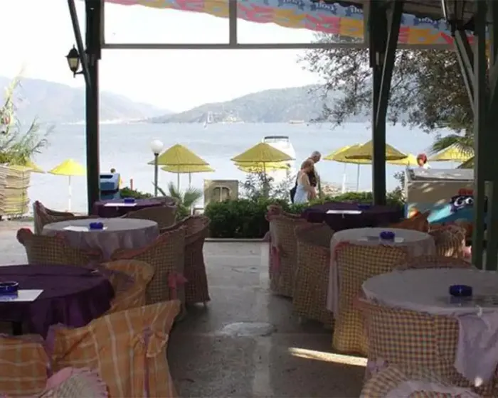Htel Amos Marmaris se nalazi na oko na oko 3 kilometara udaljenosti od centra grada i na oko 100 kilometara od aerodroma Dalaman. Od plaže ga deli samo šetalište. Ležaljke i suncobrani na plaži su besplatni, plaćaju se dušeci za ležaljke. Hotel ima ukupno 51 sobu, usluga je polupansion.