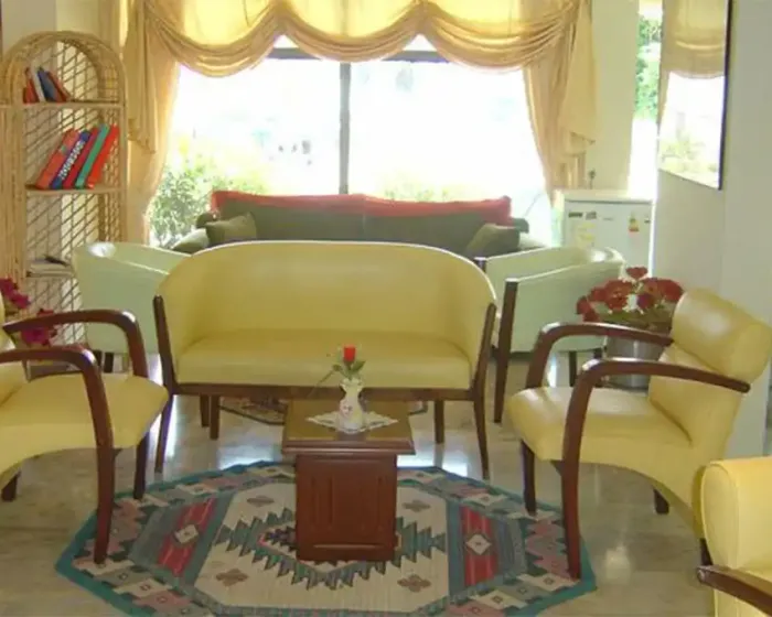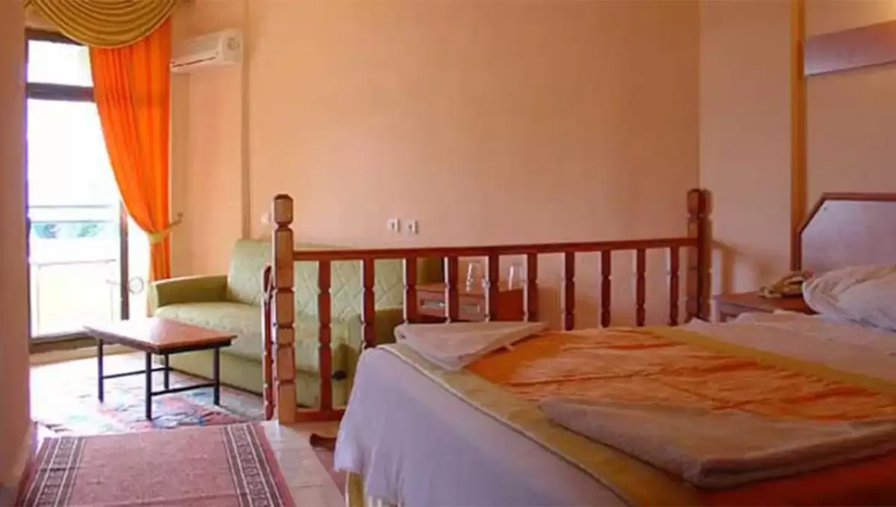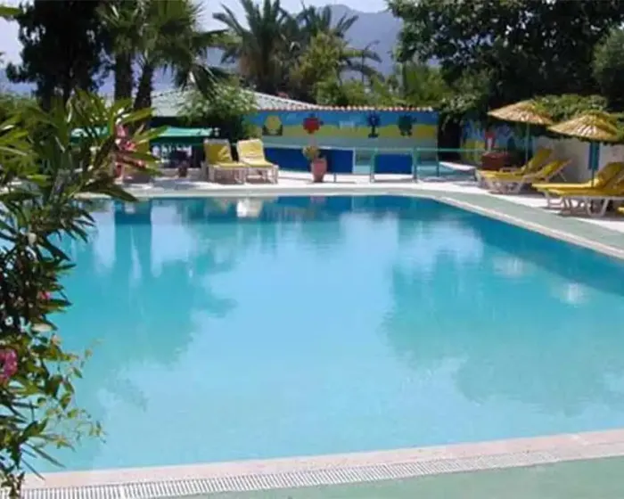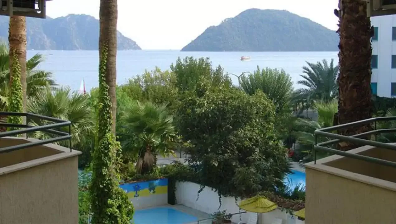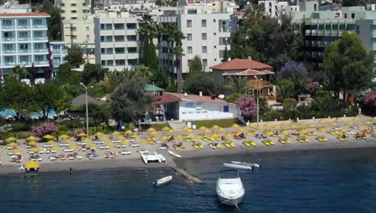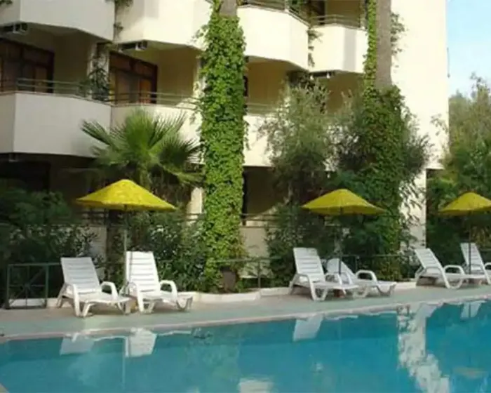 Htel Amos Marmaris se nalazi na oko na oko 3 kilometara udaljenosti od centra grada i na oko 100 kilometara od aerodroma Dalaman. Od plaže ga deli samo šetalište. Ležaljke i suncobrani na plaži su besplatni, plaćaju se dušeci za ležaljke. Hotel ima ukupno 51 sobu, usluga je polupansion.