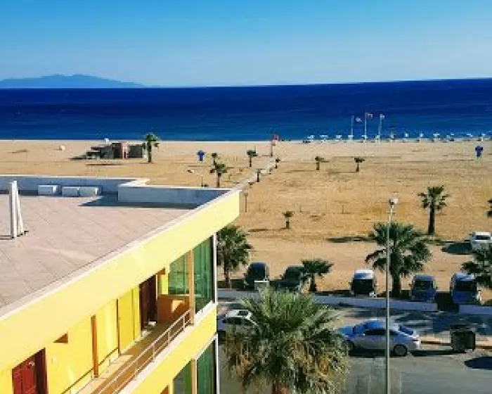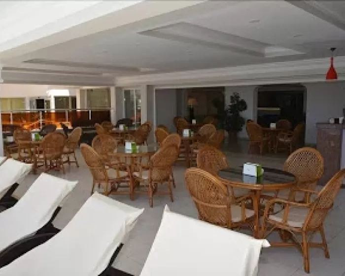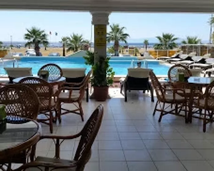 Prostrana terasa restorana je sa pogledom na more. Hotelska plaža je peščana, ležaljke i suncobrani su besplatni za goste hotela.