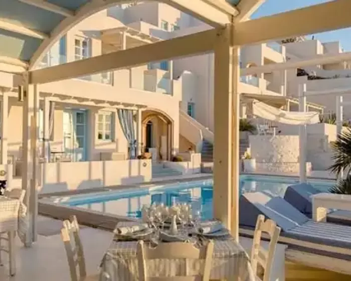 Hotel Andromeda Villas Imerovigli Santorini se nalazi u letovalištu Imerovigli, na ostrvu Santorini i ima pogled na vulkan i tvrdjave Kaldera i Skaros. Plaža se nalazi na udaljenosti od 3 kilometra od hotela.